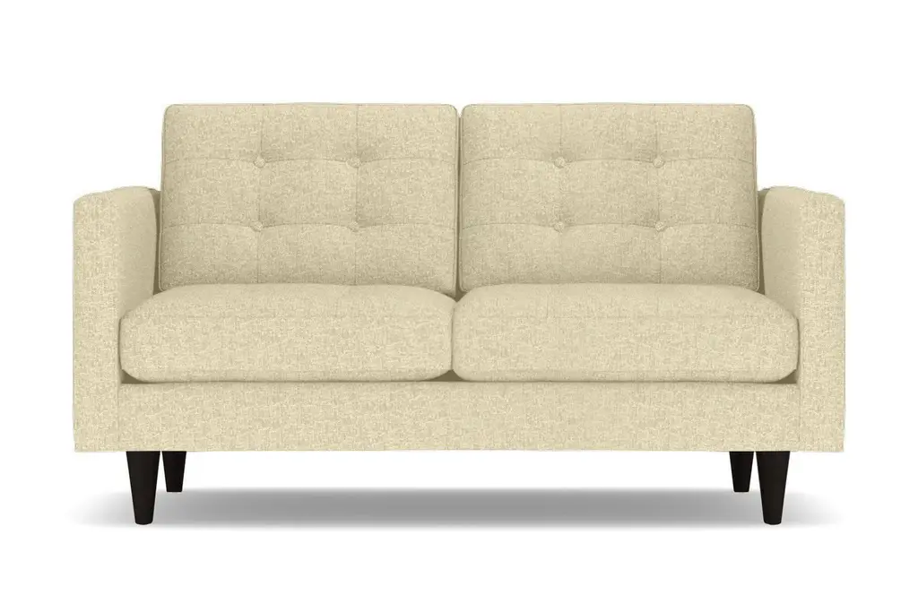 Don't settle for a boring sofa that makes your living room look "blah." Instead, get an instant wow factor by choosing the customizable Lexington apartment sofa for your home. This sofa looks simple, but it has lots of little touches that make it stand out, including button-tufted cushions, high track arms and tapered wooden legs. There's a bit of a mix between retro mid-century style and contemporary looks - perfect for your modern, eclectic tastes. We even include a limited lifetime warranty with your purchase free of charge. As if the fun and funky style weren't enough to win you over, you can also customize this chic apartment sized couch according to your tastes. That includes choose from our wide variety of fabric colors and leg finishes. You can even get our ultra-compact size (62 inch loveseat) or spring for the extended cut (78 inch apartment size), making it easy to get just the right fit for your space. If you want apartment size furniture that's made right here in the USA, get the Lexington sofa from Apt2B.