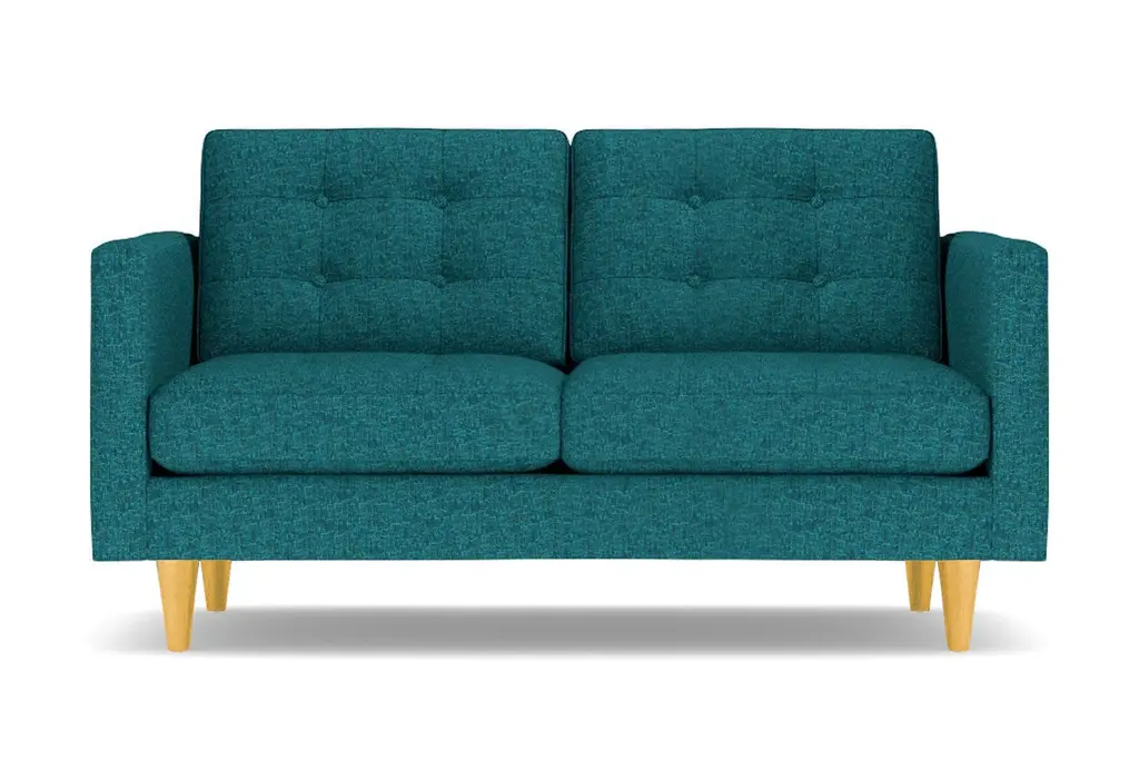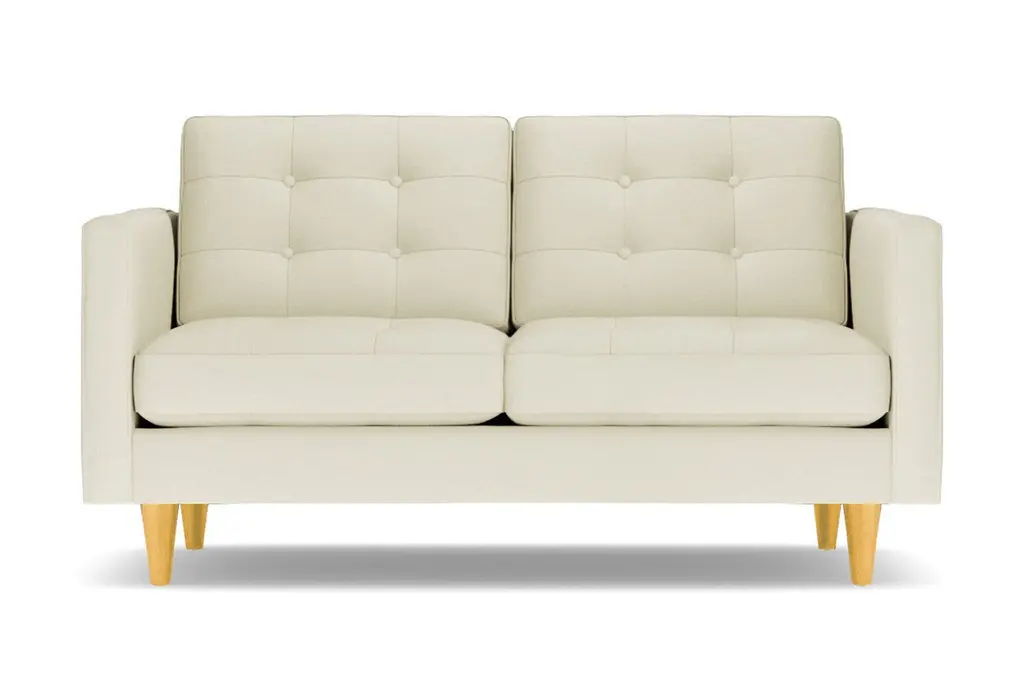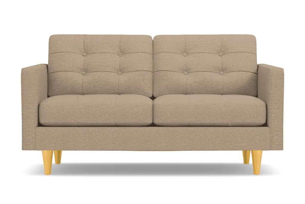 Don't settle for a boring sofa that makes your living room look "blah." Instead, get an instant wow factor by choosing the customizable Lexington apartment sofa for your home. This sofa looks simple, but it has lots of little touches that make it stand out, including button-tufted cushions, high track arms and tapered wooden legs. There's a bit of a mix between retro mid-century style and contemporary looks - perfect for your modern, eclectic tastes. We even include a limited lifetime warranty with your purchase free of charge. As if the fun and funky style weren't enough to win you over, you can also customize this chic apartment sized couch according to your tastes. That includes choose from our wide variety of fabric colors and leg finishes. You can even get our ultra-compact size (62 inch loveseat) or spring for the extended cut (78 inch apartment size), making it easy to get just the right fit for your space. If you want apartment size furniture that's made right here in the USA, get the Lexington sofa from Apt2B.