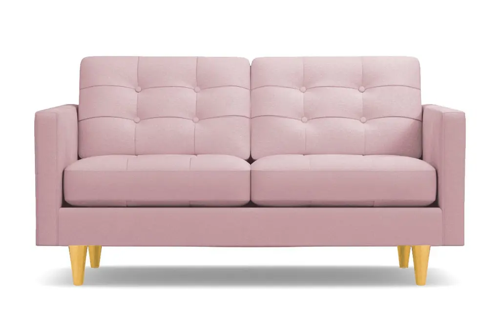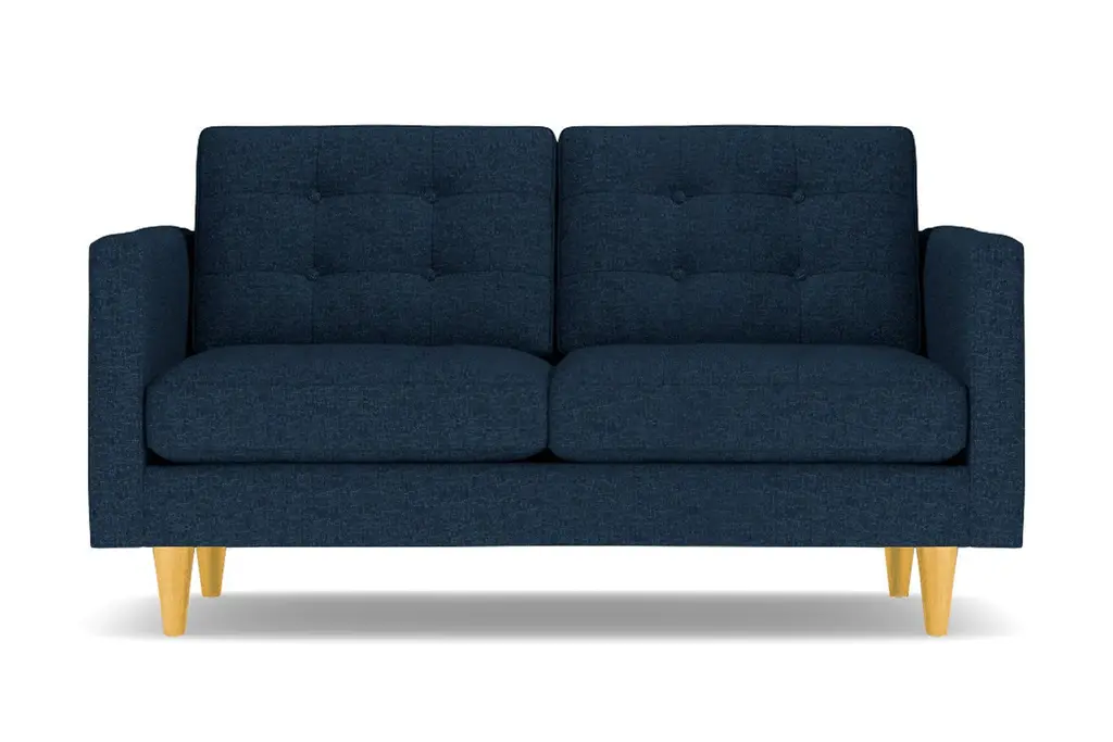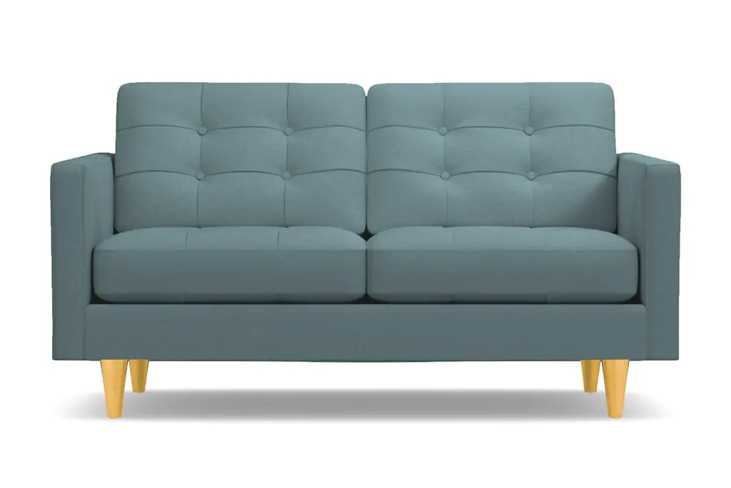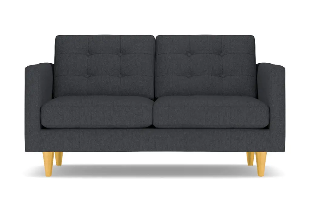Don't settle for a boring sofa that makes your living room look "blah." Instead, get an instant wow factor by choosing the customizable Lexington apartment sofa for your home. This sofa looks simple, but it has lots of little touches that make it stand out, including button-tufted cushions, high track arms and tapered wooden legs. There's a bit of a mix between retro mid-century style and contemporary looks - perfect for your modern, eclectic tastes. We even include a limited lifetime warranty with your purchase free of charge. As if the fun and funky style weren't enough to win you over, you can also customize this chic apartment sized couch according to your tastes. That includes choose from our wide variety of fabric colors and leg finishes. You can even get our ultra-compact size (62 inch loveseat) or spring for the extended cut (78 inch apartment size), making it easy to get just the right fit for your space. If you want apartment size furniture that's made right here in the USA, get the Lexington sofa from Apt2B.