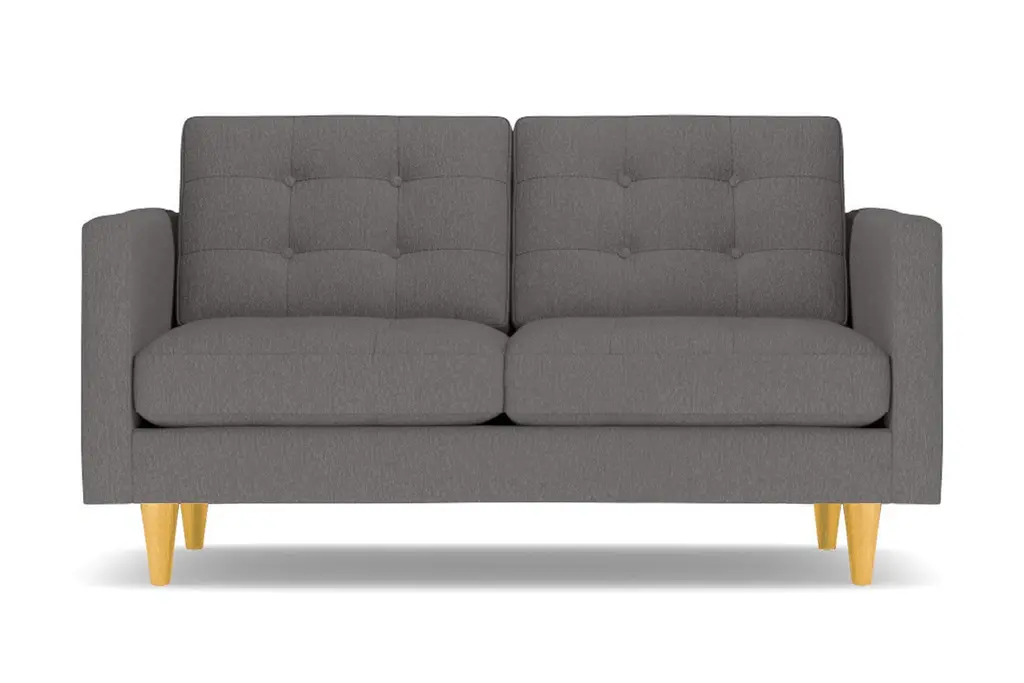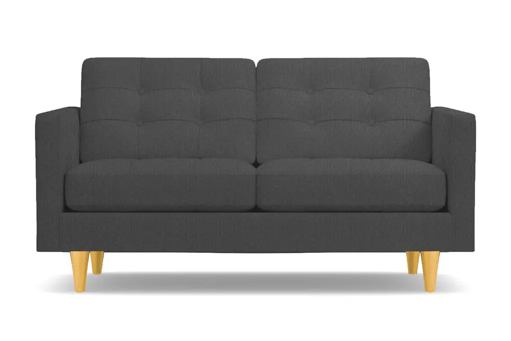 Don't settle for a boring sofa that makes your living room look "blah." Instead, get an instant wow factor by choosing the customizable Lexington apartment sofa for your home. This sofa looks simple, but it has lots of little touches that make it stand out, including button-tufted cushions, high track arms and tapered wooden legs. There's a bit of a mix between retro mid-century style and contemporary looks - perfect for your modern, eclectic tastes. We even include a limited lifetime warranty with your purchase free of charge. As if the fun and funky style weren't enough to win you over, you can also customize this chic apartment sized couch according to your tastes. That includes choose from our wide variety of fabric colors and leg finishes. You can even get our ultra-compact size (62 inch loveseat) or spring for the extended cut (78 inch apartment size), making it easy to get just the right fit for your space. If you want apartment size furniture that's made right here in the USA, get the Lexington sofa from Apt2B.