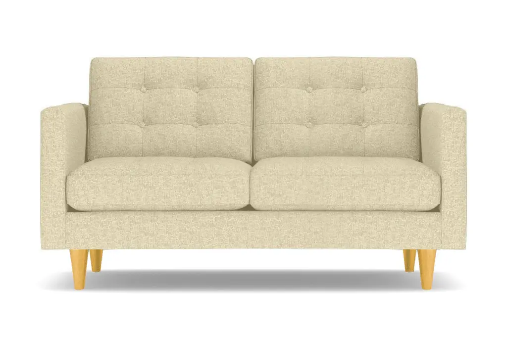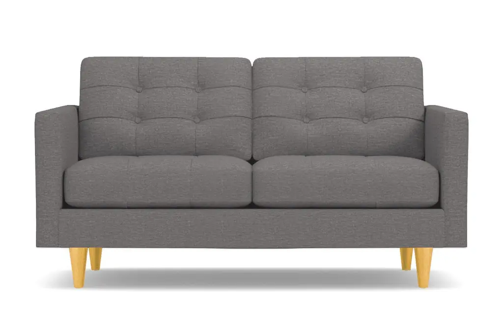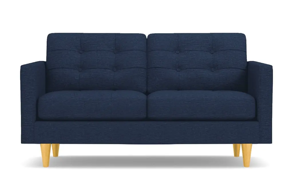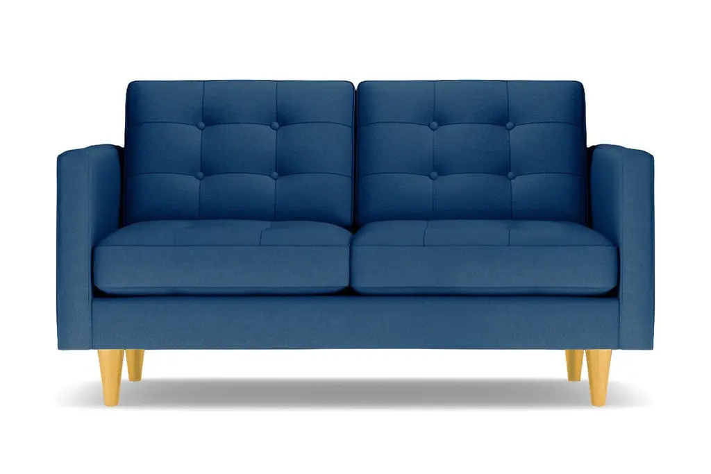Don't settle for a boring sofa that makes your living room look "blah." Instead, get an instant wow factor by choosing the customizable Lexington apartment sofa for your home. This sofa looks simple, but it has lots of little touches that make it stand out, including button-tufted cushions, high track arms and tapered wooden legs. There's a bit of a mix between retro mid-century style and contemporary looks - perfect for your modern, eclectic tastes. We even include a limited lifetime warranty with your purchase free of charge. As if the fun and funky style weren't enough to win you over, you can also customize this chic apartment sized couch according to your tastes. That includes choose from our wide variety of fabric colors and leg finishes. You can even get our ultra-compact size (62 inch loveseat) or spring for the extended cut (78 inch apartment size), making it easy to get just the right fit for your space. If you want apartment size furniture that's made right here in the USA, get the Lexington sofa from Apt2B.