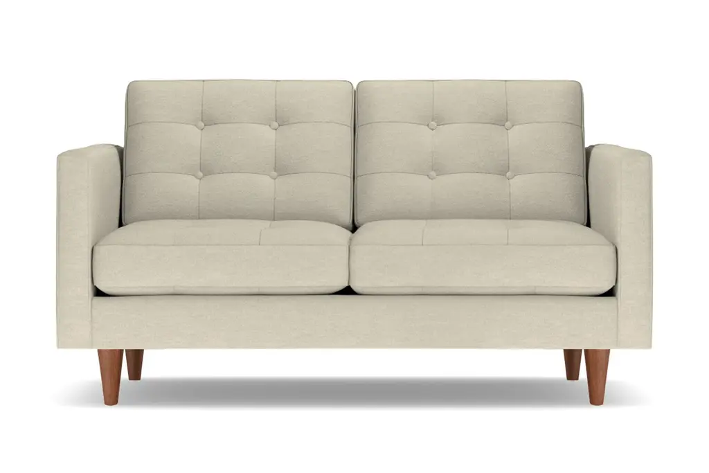 Don't settle for a boring sofa that makes your living room look "blah." Instead, get an instant wow factor by choosing the customizable Lexington apartment sofa for your home. This sofa looks simple, but it has lots of little touches that make it stand out, including button-tufted cushions, high track arms and tapered wooden legs. There's a bit of a mix between retro mid-century style and contemporary looks - perfect for your modern, eclectic tastes. We even include a limited lifetime warranty with your purchase free of charge. As if the fun and funky style weren't enough to win you over, you can also customize this chic apartment sized couch according to your tastes. That includes choose from our wide variety of fabric colors and leg finishes. You can even get our ultra-compact size (62 inch loveseat) or spring for the extended cut (78 inch apartment size), making it easy to get just the right fit for your space. If you want apartment size furniture that's made right here in the USA, get the Lexington sofa from Apt2B.