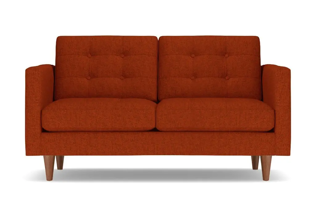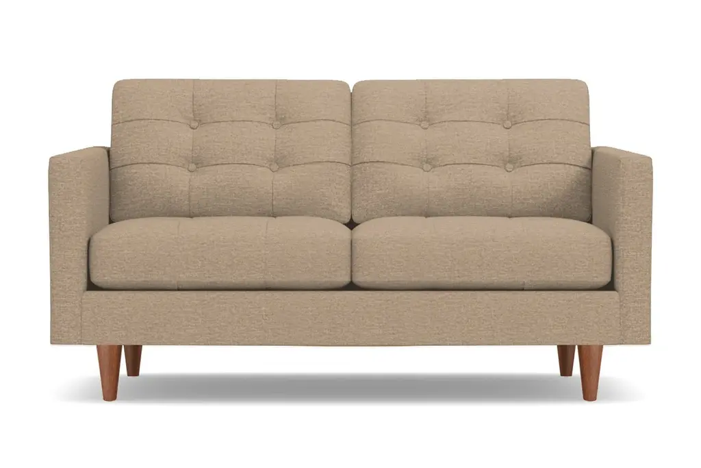 Don't settle for a boring sofa that makes your living room look "blah." Instead, get an instant wow factor by choosing the customizable Lexington apartment sofa for your home. This sofa looks simple, but it has lots of little touches that make it stand out, including button-tufted cushions, high track arms and tapered wooden legs. There's a bit of a mix between retro mid-century style and contemporary looks - perfect for your modern, eclectic tastes. We even include a limited lifetime warranty with your purchase free of charge. As if the fun and funky style weren't enough to win you over, you can also customize this chic apartment sized couch according to your tastes. That includes choose from our wide variety of fabric colors and leg finishes. You can even get our ultra-compact size (62 inch loveseat) or spring for the extended cut (78 inch apartment size), making it easy to get just the right fit for your space. If you want apartment size furniture that's made right here in the USA, get the Lexington sofa from Apt2B.
