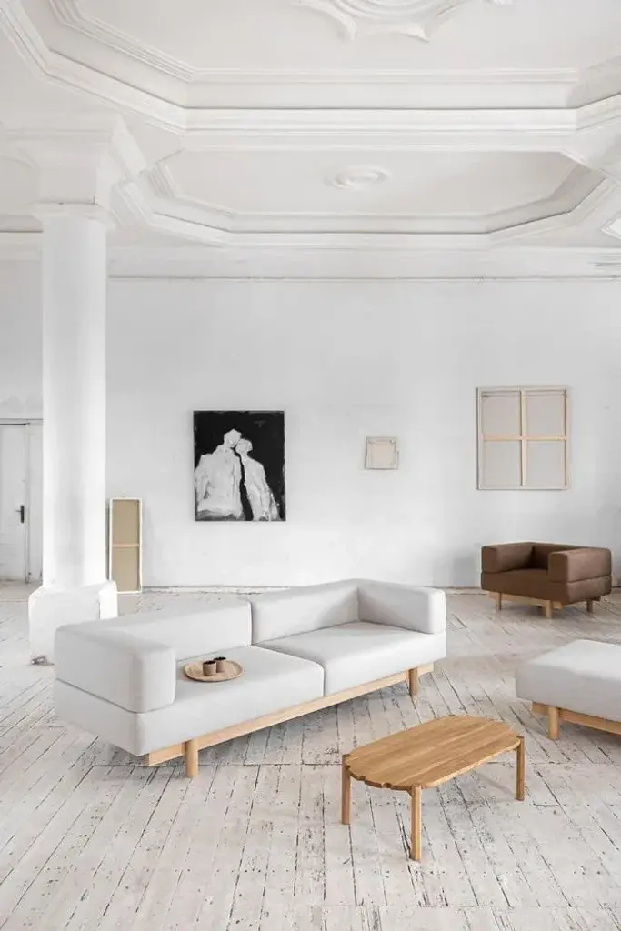 Introducing the Alchemist collection - a series of sophisticated sofas, armchairs and poufs, that exude timeless elegance. Melding modernist design with traditional Japanese structures, this collection is a masterpiece of balance and proportion, boasting clean lines that are both minimal and refined. Crafted with meticulous attention to detail, the soft pillows of the Alchemist are sculpted to perfection, seamlessly sitting on an oak-veneered frame. The structure of the sofa is characterized by sharp, well-defined lines that run along all sides, creating a welcoming and visually stunning piece from every angle. In any room it graces, the Alchemist's composed posture radiates a sense of calm and comfort, offering a perfect retreat for relaxation and rejuvenation. This collection is a true work of art, seamlessly blending style and comfort into a statement piece that will elevate any space. Labeled by Maker
