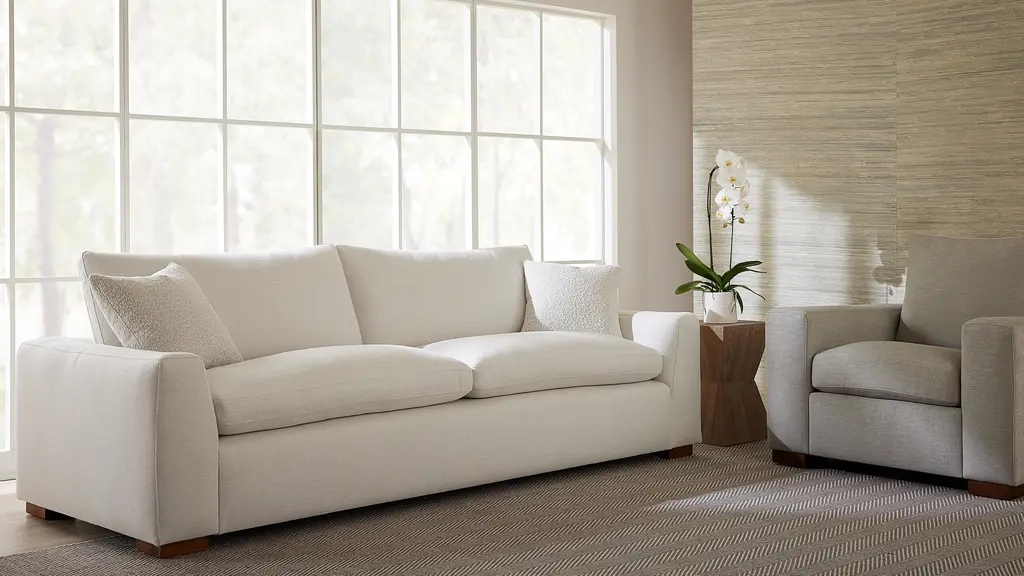 DESIGN There's nothing easier than slipping into our Like Butter Collection. Built for lounging, the Like Butter Sofa features a low back and high arm for melt-in comfort. Available in 8 sizes and more than 125 fabrics and leathers so you can create the perfect sofa for your space. Crafted for lasting comfort and personalized style, the Like Butter Sofa features the highest quality, American-made materials backed by our limited lifetime warranty. FEATURES Solid Foundation: Our frames are constructed from precision-cut, FSC-certified engineered wood for unmatched strength and stability, featuring reinforced, interlocking joinery for added durability. Sink-In Coziness Like Butter cushions are made from hypo-allergenic and cruelty-free down alternative fill wrapped around a high-quality thin foam core - giving you a super cozy, sink-in feel (trust us, you'll never want to leave). Regular fluffing will keep your sofa looking perfect. Supportive Webbing Suspension: Designed to maximize comfort, our premium webbing system provides a resilient foundation. Customizable Upholstery: Choose from a vast selection of durable premium and performance fabrics and genuine Italian leather to personalize your Like Butter Sofa's look.