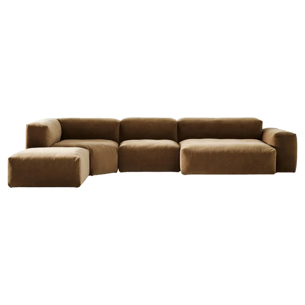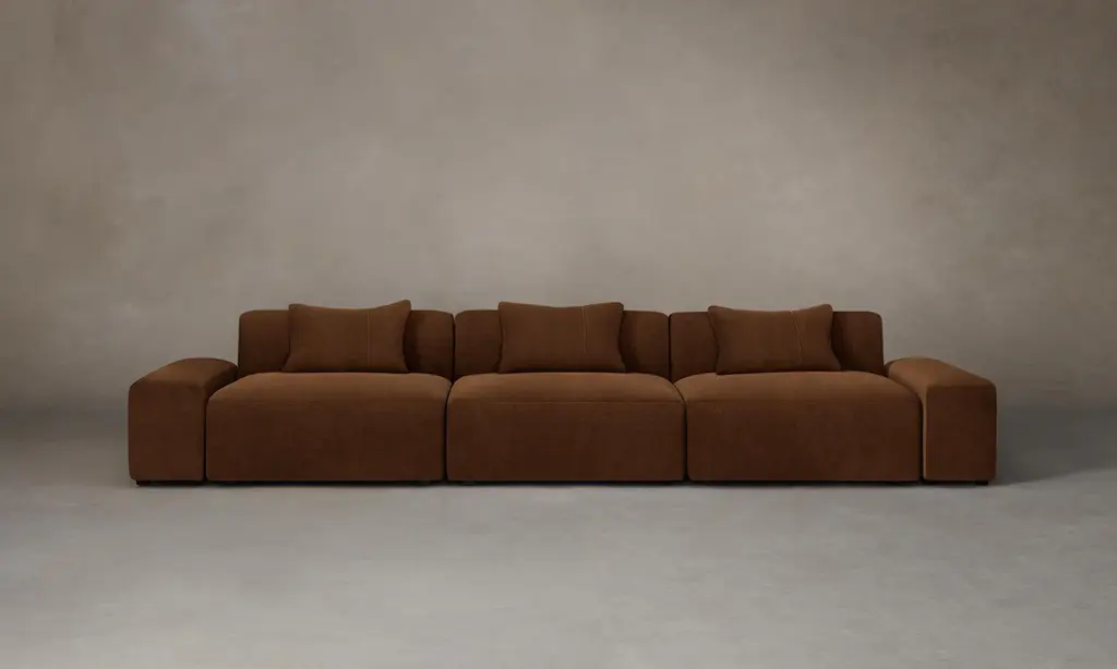 Linamore Davis Fabric Sofa Composition by Amura LabDimensions: W 432 x D 100 x H 67 cmMaterials: FRAME: solid wood and multiply. SUSPENSIONS: rubber and polypropylene belts. REMOVABLE PARTS: fully slipcover. SEAT, BACK and ARMRESTS: polyurethane foam, density 30 kg/m3 and Mollapiuma."A refined game of interlocking and combinations” Thanks to a refined game of interlocking and combinations, Davis renews the living area by focusing entirely on volumes and geometries. Davis adapts to the most diverse contexts, thanks to the variety of available and freely combinable coverings, which amplify the versatility of the sofa. An unmistakable softness, capable of transmitting warmth and at the same time a widespread sense of peace and which, combined with the comfort and craftsmanship and Made in Italy of Davis , transforms a moment of pause into a real parenthesis of human-scale well-being in perfect Amura style.Amura Lab:In their gaze, they carry the strong and poignant beauty of Southern Italy. In their hands, the passion and careful craftsmanship with which they create timeless design environments, capable of combining the memory of their origins with the future of design.It is within this microcosm made of culture, ever-present traditions, artistic influences, and continuous innovation that Amura was born, the Made in Italy furniture brand that embodies the strong and authentic beauty of Southern Italy. A young company that passionately and meticulously pursues the creation of environments with a timeless design, capable of merging the memory of its origins with the future of design. From the careful selection of materials to the pursuit of innovative designs, each phase of creation carries the indelible mark of the most authentic atmospheres of the South