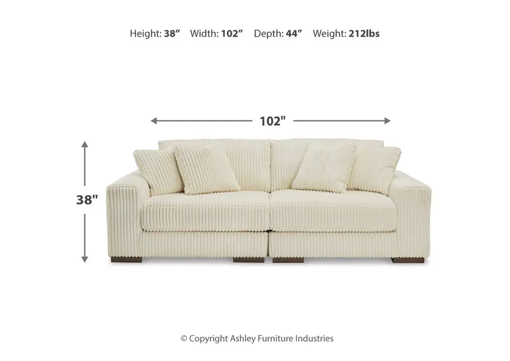 Plush and posh. Showcase your eye for on-trend texture with the statement-making cord upholstery of the Lindyn sectional sofa. Its stunningly soft fabric entices in an ivory hue, complementing contemporary color palettes. Sink into the cushions and plan to stay a while—this cozy living room centerpiece highlights your high-end approach to comfort and style. Weight 212.000 lbs. (95.4kgs.)