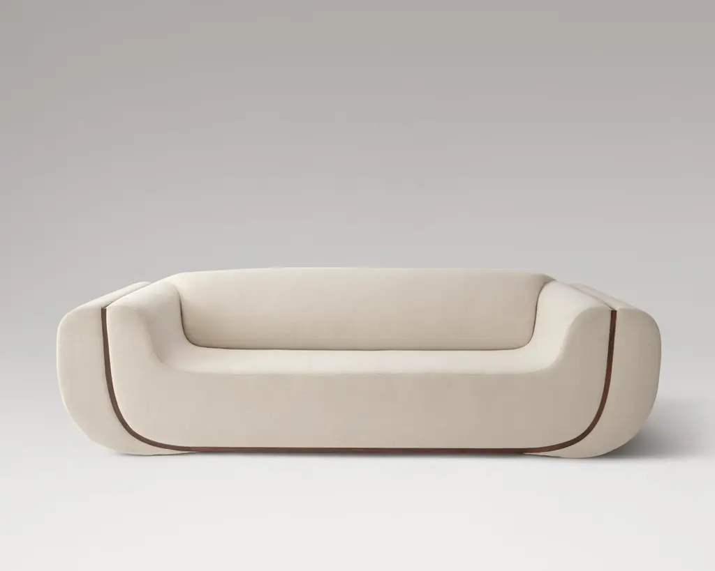 The Linea Sofa is defined by the gentle flow of its upholstered curves, balanced by solid wood details. Staying true to the studio's design philosophy, it plays with the tension between softness and structure as a key sculptural element. Customizations available upon request. Available in COM (Customer's Own Material) and COL (Customer's Own Leather). COM requires 15 yards. Fabric sample requested for approval. Made to order. Customizations available. Dimensions108 in L44 in W31.5 in HMaterialsSolid Wood Structure Foam Traditional Webbing Laminated Wood InlayLead time10 to 14 weeksMade in Los Angeles.
