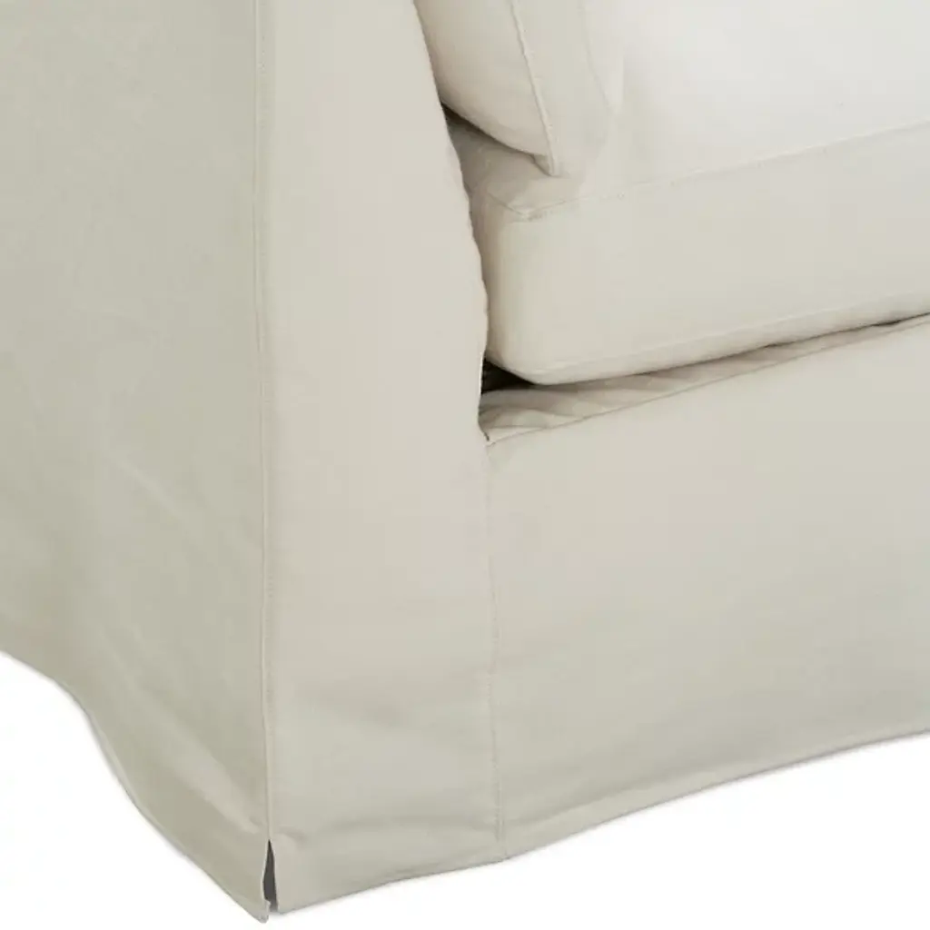The Liora Slipcovered Sofa from Alder & Ore matches relaxed comfort and soft surfaces with strong craftsmanship. Optimized for everyday lounging, its flippable cloud cushion provides lasting support, while loose pillows add an extra touch of softness. The tailored slipcover drapes elegantly over the base, complementing its plush cotton upholstery and resilient foam cushioning. Built with a sturdy FSC-certified hardwood frame, this sofa is also Greenguard Certified, ensuring low emissions for a healthier home, while remaining a memorable choice for cozy yet refined living spaces.