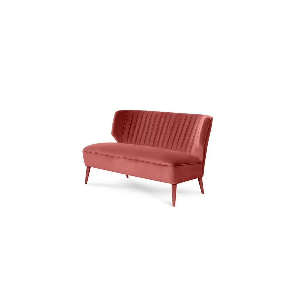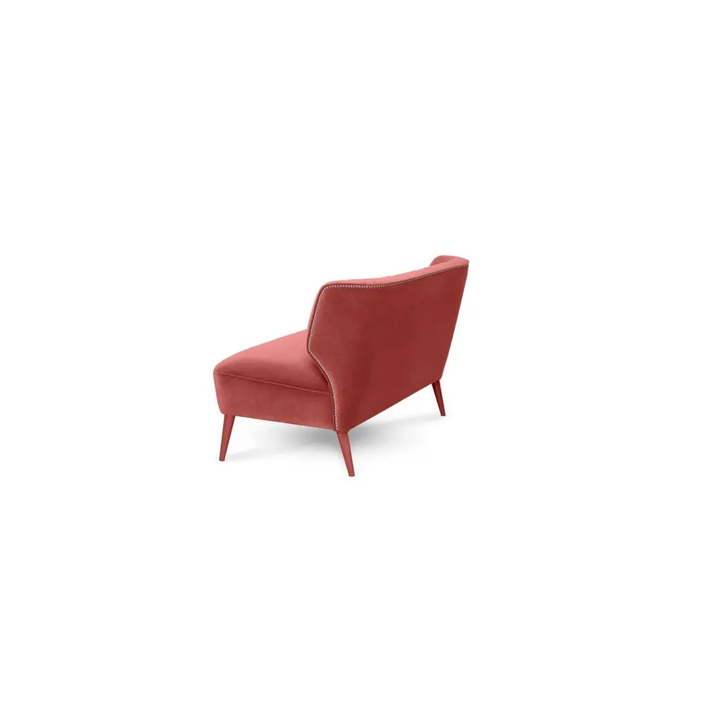 Lipstick 2 Seat Sofa by MunnaDimensions: D 76 x W 130 x H 79 cm. SH: 44 cm.Materials: Solid wood, foam, brass, and upholstery.Finish: Cotton Velvet, ref. Antique Pink, CV28, antique pink gloss lacquer legs, and plated nickel feet covers.Available in all Munna fabrics except Wild Silk. Available in client’s ownmaterial. Available upholstered, Rosewood or Ebony veneer, solid Walnut, Wengé stain, or lacquer in all RAL colors, in matt or gloss. Fire retardant interlining is available on request. Handmade in Porto. Please contact us.Established in Porto in 2008, Munna is a furniture design brand renowned for creating handmade upholstery with unmatched craftsmanship, seamlessly blending noble materials and timeless design, for both commercial and residential projects.Made by hand in Porto, Munna’s pieces honor the profound heritage of craftsmanship, while drawing inspiration from history’s most influential artistic periods. Munna’s pieces are made of the finest fabrics such as cotton velvet, twill, leather, and silk; the finest wood veneers, such as ebony, walnut, and rosewood; sumptuous gold, silver, and copper leaves, metal details in brass, nickel, and copper, and superior lacquers.