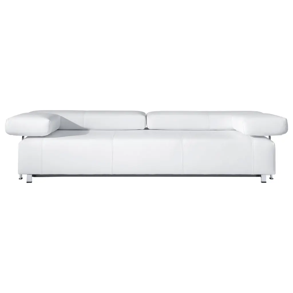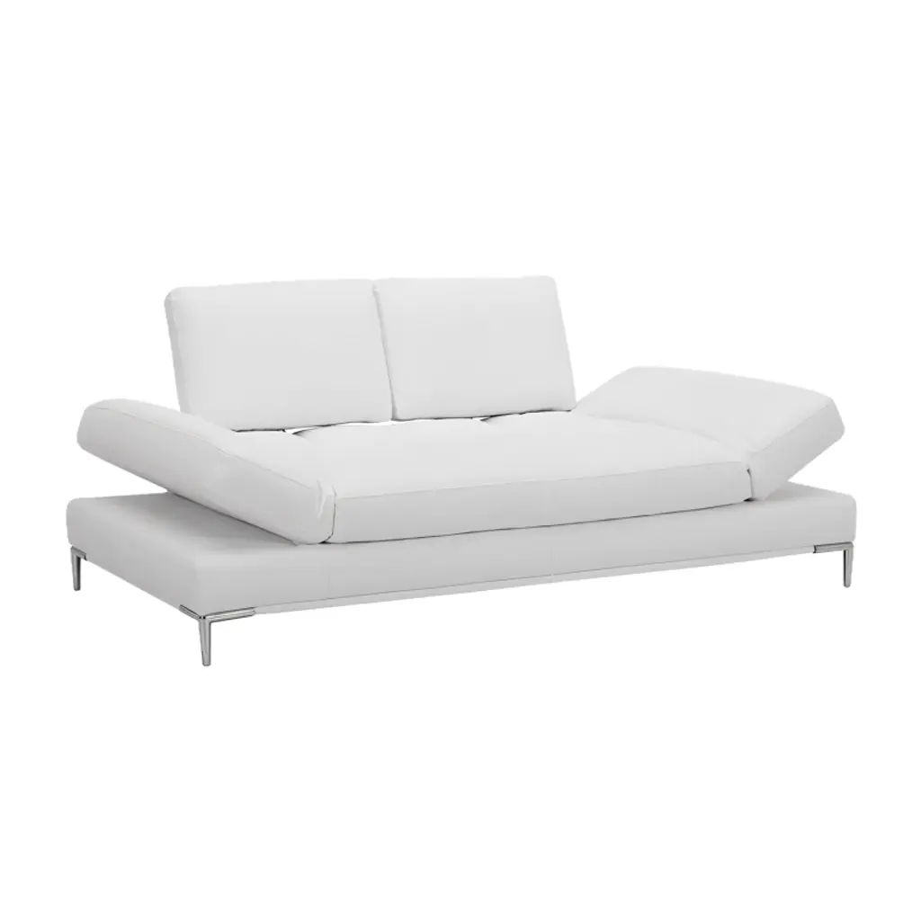 Lounge on the Livio 2 Seater Sofa White. With two movable armrests, this sofa is the ultimate in comfort. Sticking to modern furniture's classic motto of clean lines and functional design, this sofa lets you sit back and find tranquility in the middle of your living room. Soft white upholstery hugs the Livio Sofa for a fresh, elegant finish. *Headrests are sold separately*