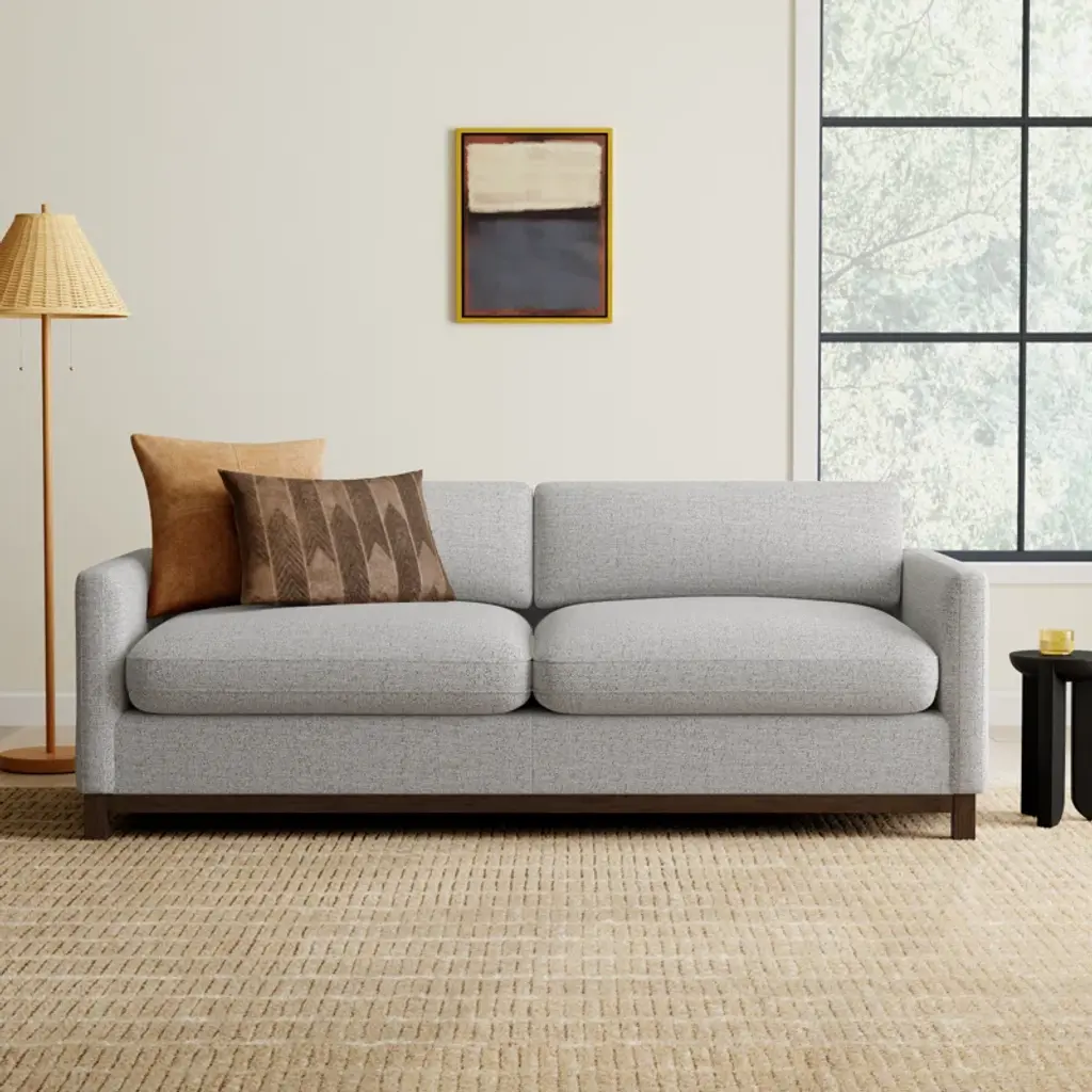 Get ready to transform your living room with this cozy and contemporary sofa. The frame is crafted from solid and engineered pine wood, ensuring a reliable foundation. The loose, down-filled back and wide square arms offer a plush and inviting spot to unwind. With reversible cushions, cleaning is a breeze, and the sinuous spring seat provides firm support. The neutral hue pairs effortlessly with vibrant or understated decor, making it a versatile addition to your space. Perfect for seating two, this sofa is ready to be your new favorite hangout spot.