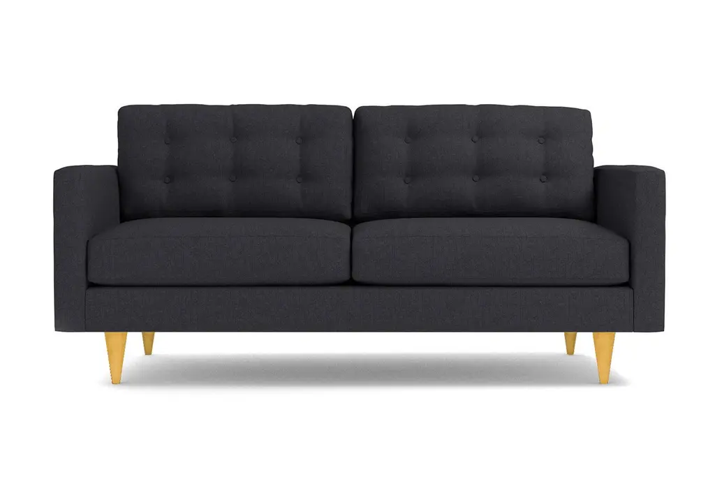 The Logan Apartment Size Sofa is the easiest way to add a touch of vintage glamour to your living space. The sleek tapered wooden legs and button-tufted back cushions will look just stunning in your living room and because Apt2B thinks of just about everything, this couch was designed specifically for apartment living - so it's not too big, it's not too small - it's just right. Relax on the soft cushions and kick your feet up after a day at the office. Enjoy your choice of fabrics and browse over 50 different colors. Whether you want to stick to a classic shade or you crave something bright and vivid, we've got it. The Logan Sofa comes with a limited lifetime warranty. Add a bit of vintage glamour to your space with the Logan. Sleek wood legs and button tufted back cushions take this modern shape to an elevated level. The ultimate show piece for your stylish room.