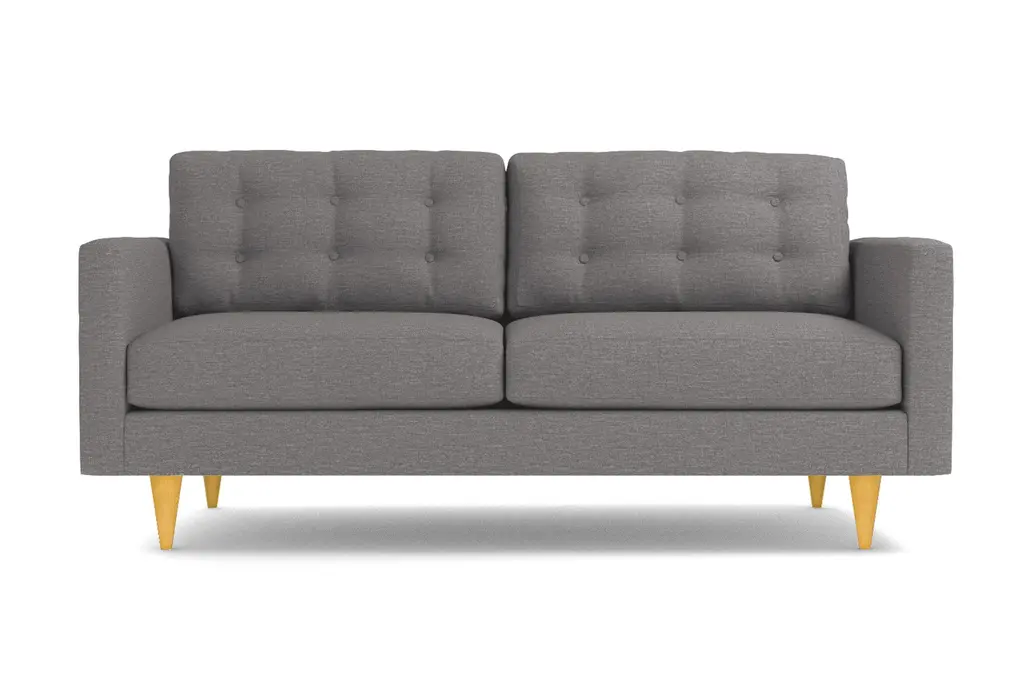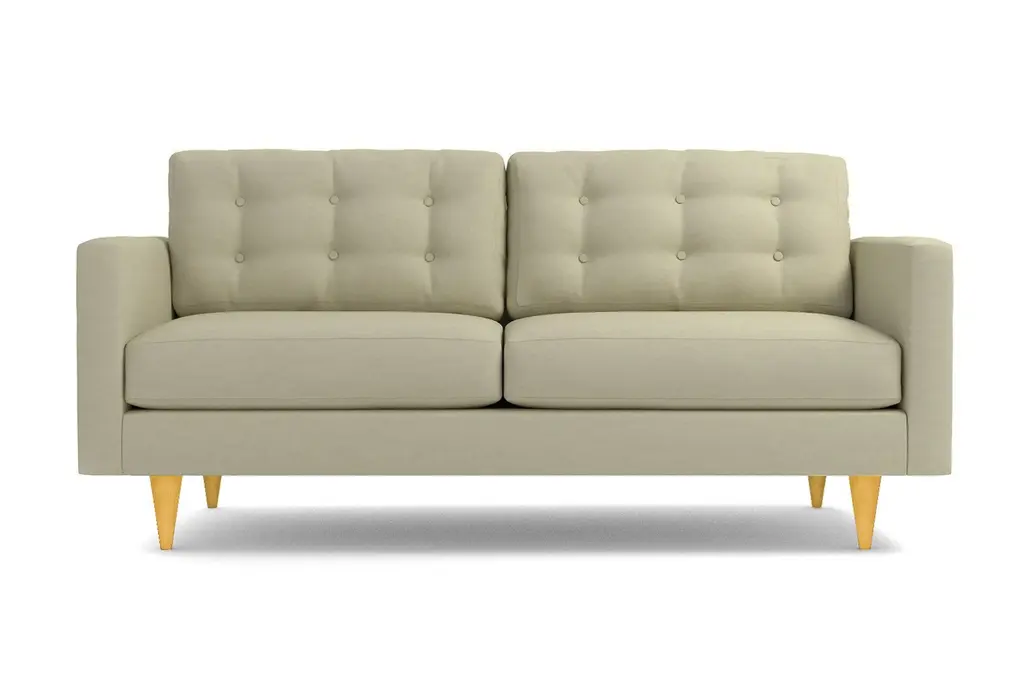 The Logan Apartment Size Sofa is the easiest way to add a touch of vintage glamour to your living space. The sleek tapered wooden legs and button-tufted back cushions will look just stunning in your living room and because Apt2B thinks of just about everything, this couch was designed specifically for apartment living - so it's not too big, it's not too small - it's just right. Relax on the soft cushions and kick your feet up after a day at the office. Enjoy your choice of fabrics and browse over 50 different colors. Whether you want to stick to a classic shade or you crave something bright and vivid, we've got it. The Logan Sofa comes with a limited lifetime warranty. Add a bit of vintage glamour to your space with the Logan. Sleek wood legs and button tufted back cushions take this modern shape to an elevated level. The ultimate show piece for your stylish room.