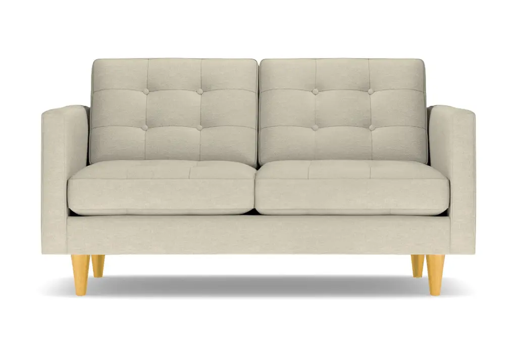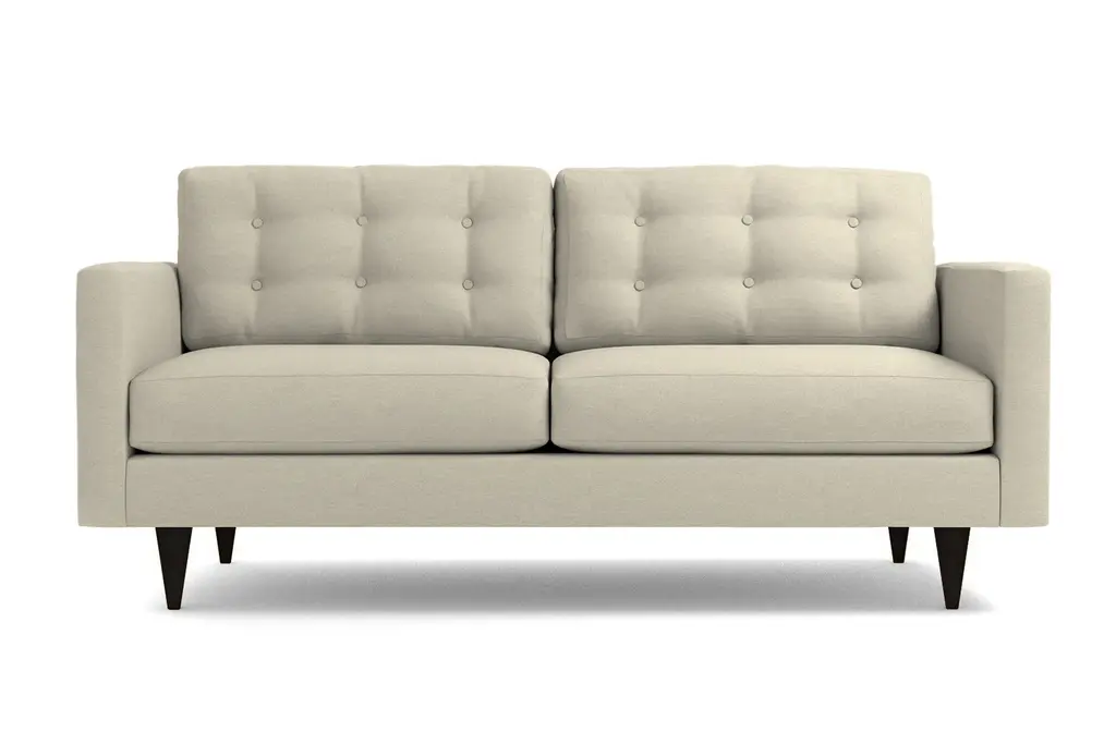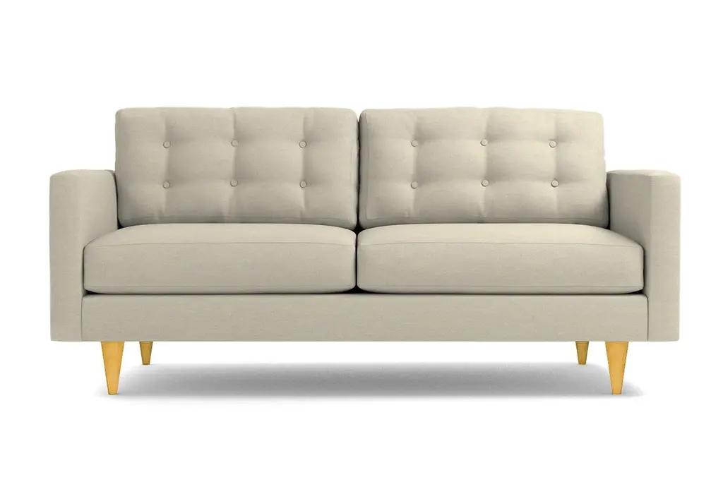 The Logan Apartment Size Sofa is the easiest way to add a touch of vintage glamour to your living space. The sleek tapered wooden legs and button-tufted back cushions will look just stunning in your living room and because Apt2B thinks of just about everything, this couch was designed specifically for apartment living - so it's not too big, it's not too small - it's just right. Relax on the soft cushions and kick your feet up after a day at the office. Enjoy your choice of fabrics and browse over 50 different colors. Whether you want to stick to a classic shade or you crave something bright and vivid, we've got it. The Logan Sofa comes with a limited lifetime warranty. Add a bit of vintage glamour to your space with the Logan. Sleek wood legs and button tufted back cushions take this modern shape to an elevated level. The ultimate show piece for your stylish room.
