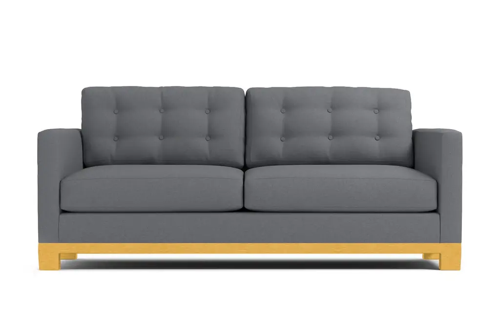 How hot is this sofa? Seriously, it looks like it just walked off the set of "Mad Men." It features button-tufted back cushions and clean lines for a sophisticated feel. The solid wood base accentuates its modern style, which will look just stunning in your living room. We'll customize the Logan Drive in your choice of dozens of colors - from cream and espresso to green apple and amethyst, you'll find the perfect shade for your home. Our upholstery is hypo-allergenic and breathable, so it's ideal for those who suffer from allergies. Pets and kids are no match for the Logan Drive since it's stain resistant and easy to clean. This sofa is made in the United States and backed by a limited lifetime warranty. Add a bit of vintage glamour to your space with the Logan Drive. A solid wood base and button tufted back cushions take this modern shape to an elevated level. The ultimate show piece for your stylish room.
