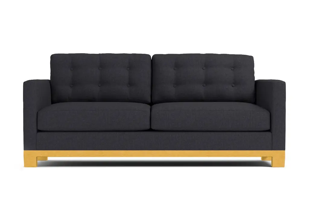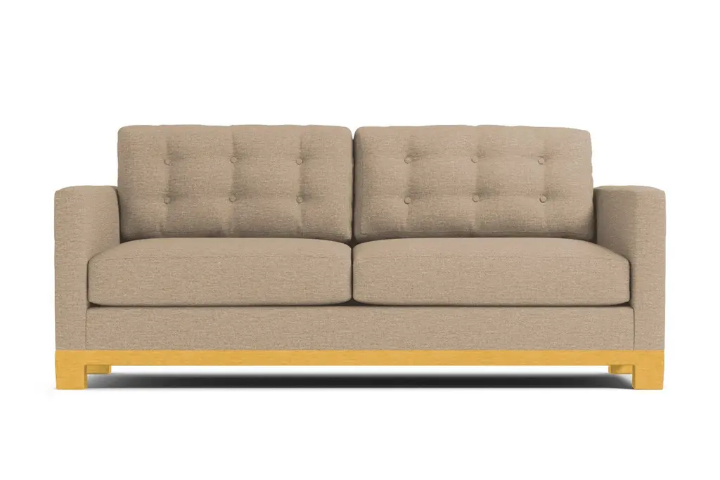 How hot is this sofa? Seriously, it looks like it just walked off the set of "Mad Men." It features button-tufted back cushions and clean lines for a sophisticated feel. The solid wood base accentuates its modern style, which will look just stunning in your living room. We'll customize the Logan Drive in your choice of dozens of colors - from cream and espresso to green apple and amethyst, you'll find the perfect shade for your home. Our upholstery is hypo-allergenic and breathable, so it's ideal for those who suffer from allergies. Pets and kids are no match for the Logan Drive since it's stain resistant and easy to clean. This sofa is made in the United States and backed by a limited lifetime warranty. Add a bit of vintage glamour to your space with the Logan Drive. A solid wood base and button tufted back cushions take this modern shape to an elevated level. The ultimate show piece for your stylish room.