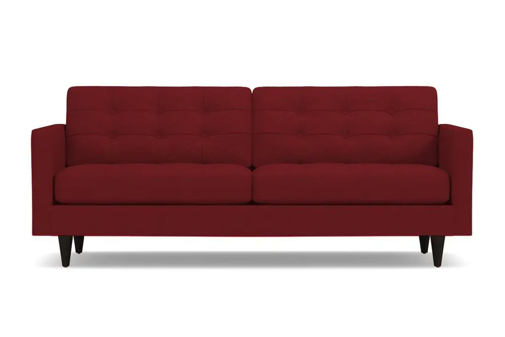 How hot is this sofa? Seriously, it looks like it just walked off the set of "Mad Men." It features button-tufted back cushions and clean lines for a sophisticated feel. The wooden tapered legs accentuate its modern style, which will look simply stunning in your living room. We'll customize the Logan in your choice of over 50 colors - from cream and espresso to green apple and amethyst, you'll find the perfect shade for your home. Our upholstery is hypoallergenic and breathable, so it's ideal for those who suffer from allergies. Pets and kids are no match for the Logan since it's stain-resistant and easy to clean. This sofa is made in the United States and backed by a limited lifetime warranty.Add a bit of vintage glamour to your space with the Logan. Sleek wood legs and button tufted back cushions take this modern shape to an elevated level. The ultimate show piece for your stylish room.