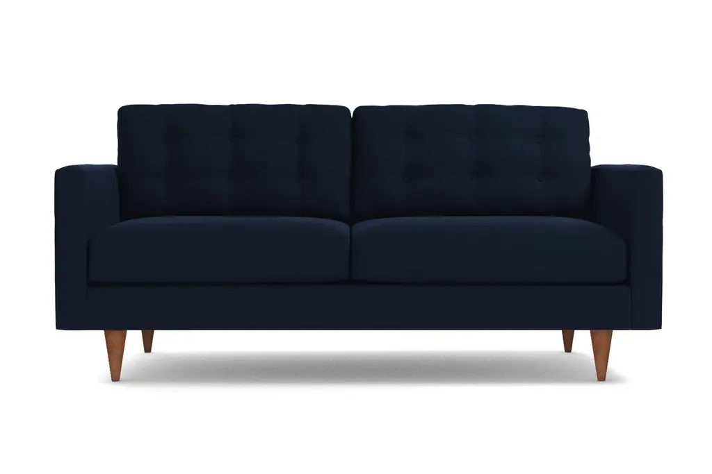 How hot is this sofa? Seriously, it looks like it just walked off the set of "Mad Men." It features button-tufted back cushions and clean lines for a sophisticated feel. The wooden tapered legs accentuate its modern style, which will look simply stunning in your living room. We'll customize the Logan in your choice of over 50 colors - from cream and espresso to green apple and amethyst, you'll find the perfect shade for your home. Our upholstery is hypoallergenic and breathable, so it's ideal for those who suffer from allergies. Pets and kids are no match for the Logan since it's stain-resistant and easy to clean. This sofa is made in the United States and backed by a limited lifetime warranty.Add a bit of vintage glamour to your space with the Logan. Sleek wood legs and button tufted back cushions take this modern shape to an elevated level. The ultimate show piece for your stylish room.