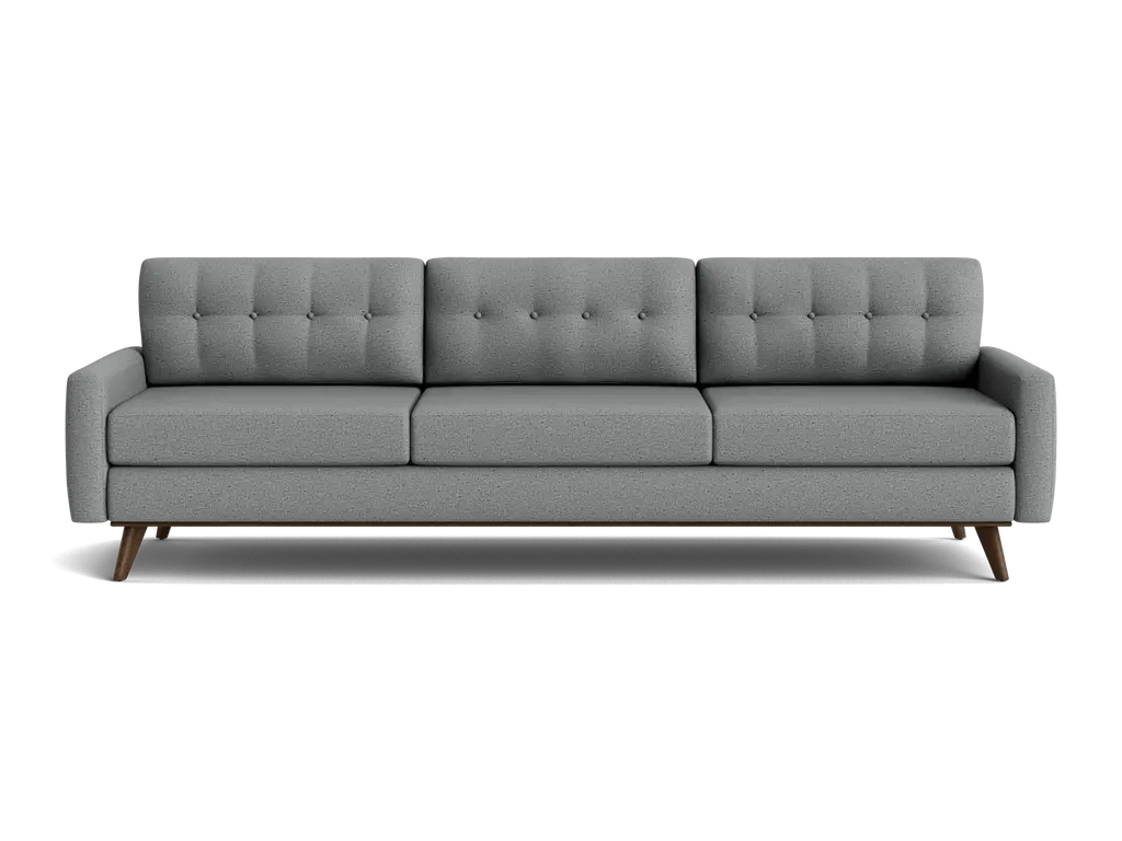 Enjoy mid-century modern style at its most affordable, beautiful and versatile with our London Dark Grey sofa. You'll love the tight, grid-tufted back, track arms and tapered beech wood legs, which can be removed for easy delivery. From solid construction, to streamlined tailoring, to durable upholstery, every detail reflects meticulous craftsmanship, exceptional quality and outstanding value. Not to mention, you get a choice of 2 colors.