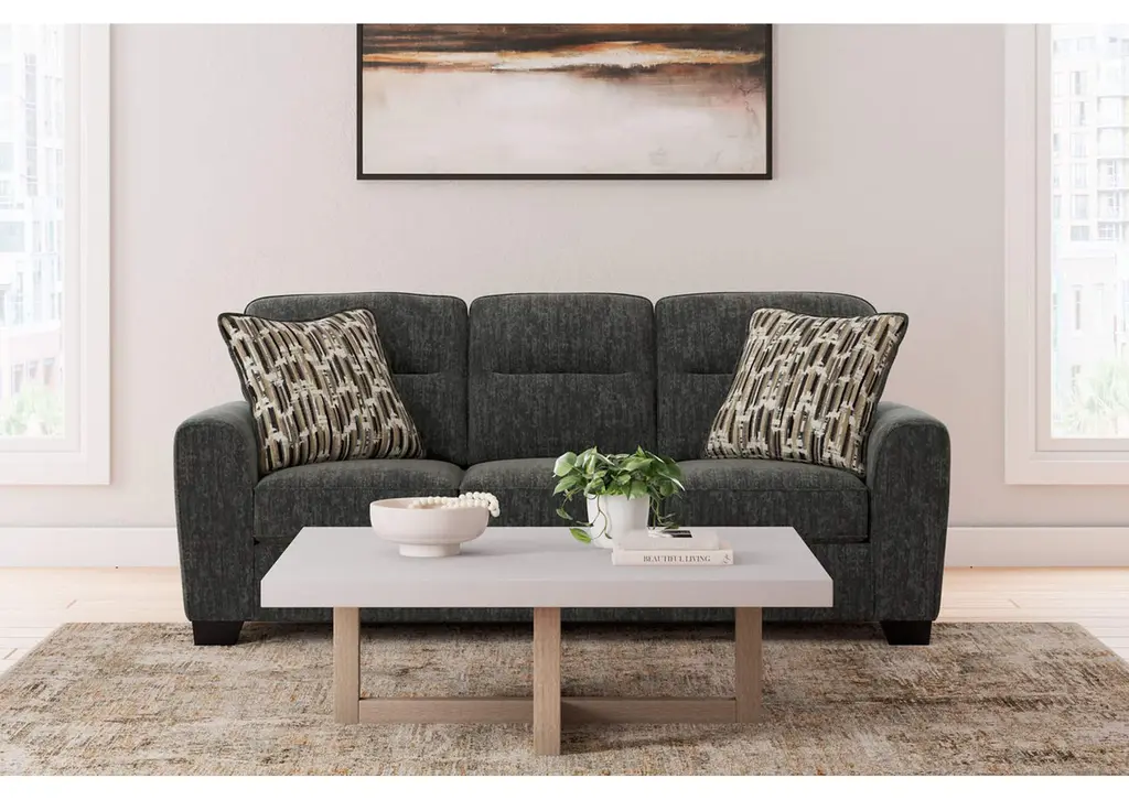 The Lonoke sofa speaks to those drawn to fresh, contemporary style with richly neutral appeal. Subtle and sophisticated, the plush upholstery and dark tri-block legs are a natural complement for so many color schemes. Two accent pillows make the seating even more welcoming. Curling up on this sofa to enjoy a night in is never out of the question. Weight 138.000 lbs. (62.1kgs.)