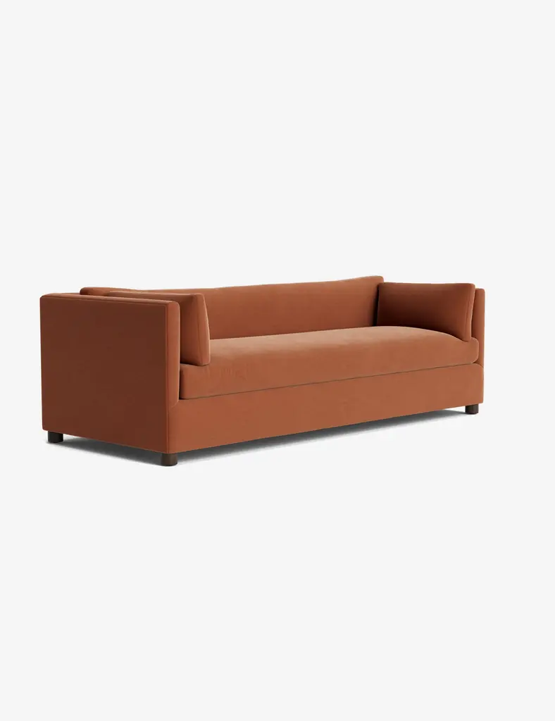 Crisp upholstery accentuates the clean lines of this sofa. Available in a beautiful selection of earth-toned fabricsthe deep seat and shelter-style design offer a refined look for a grounded space tailored to you. Style this couch with a luxe throw and a sculptural side table to elevate its soft appeal.