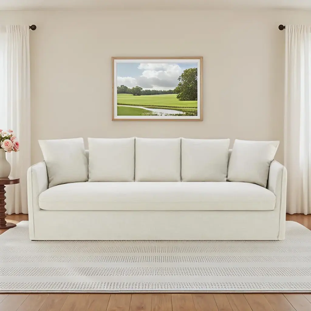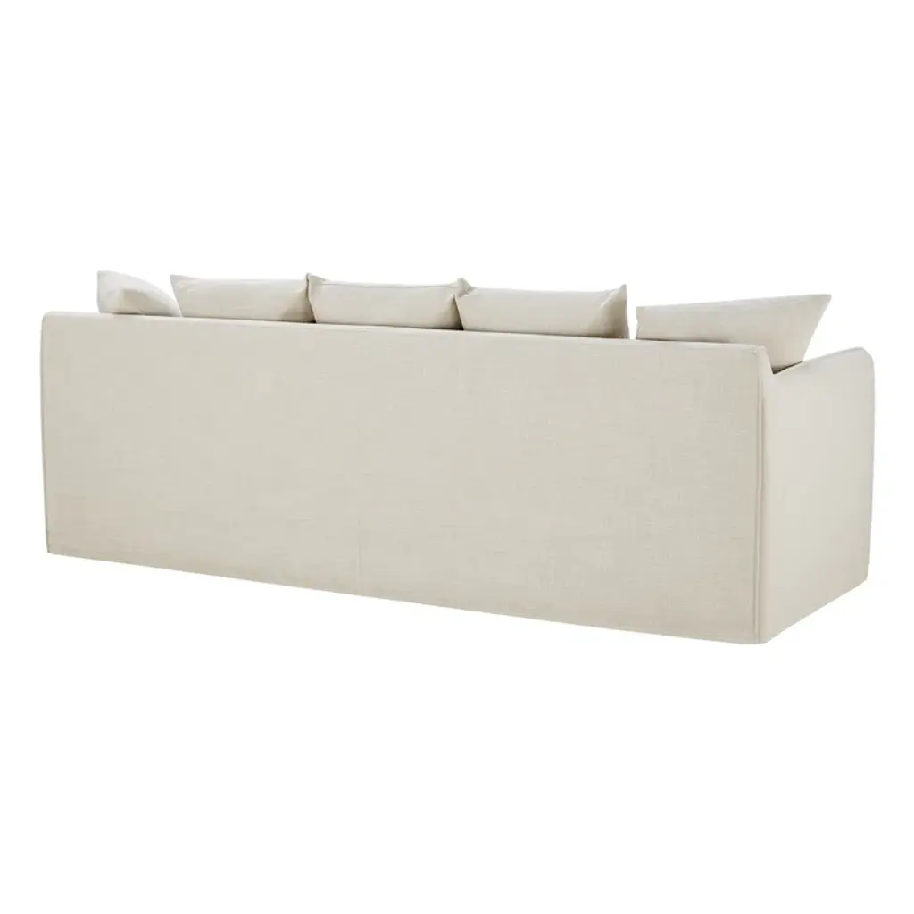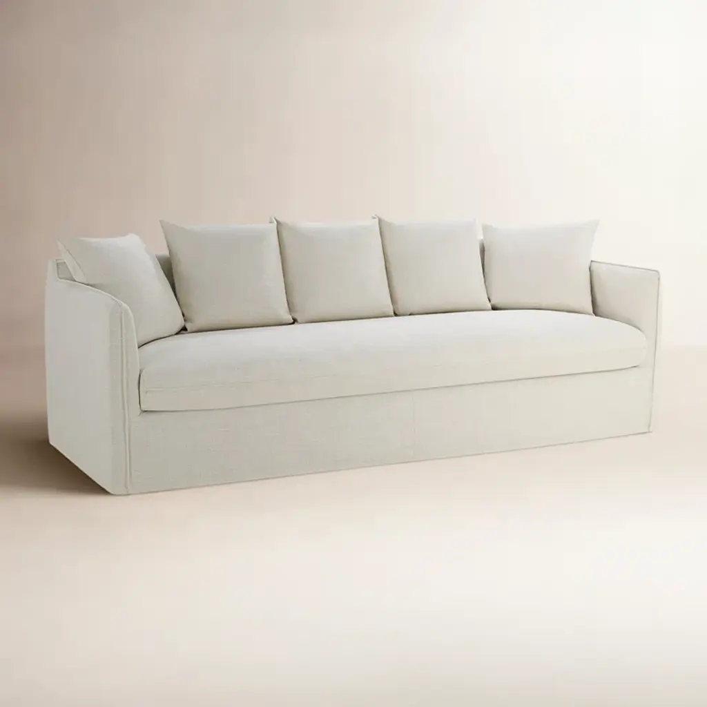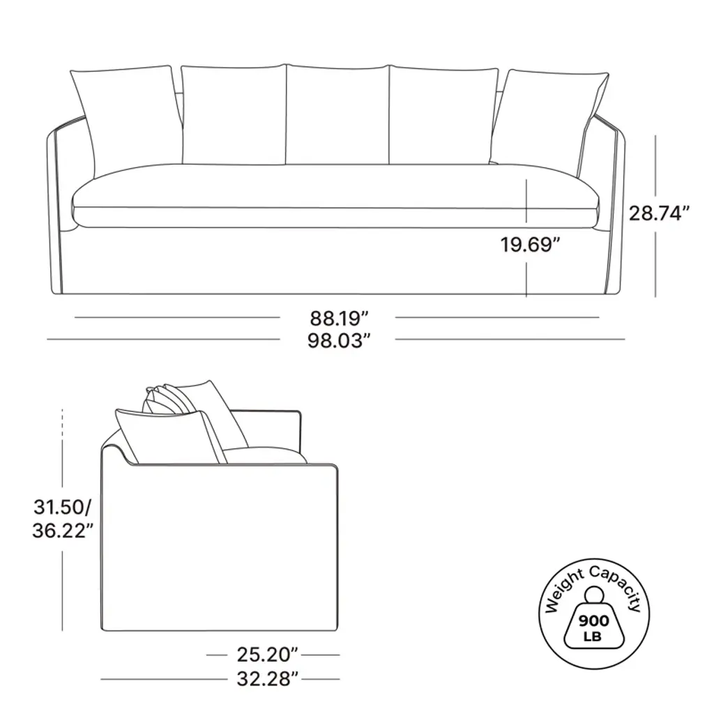 If you are looking to create an aesthetic with a sophisticated yet warm, welcoming feel, look no further than the Louella Upholstered Sofa. A classic design with crisp, clean lines, this sofa creates the perfect timeless centerpiece for your gathering space. Layered loose pillows enhance its luxurious yet approachable feel. The cushions, filled with a high-density foam and feather blend, provide the perfect blend of sink-in comfort and support. A sturdy kiln-dried wood frame reinforced by mortise-and-tenon joinery ensures long-lasting durability. The dual suspension system prevents sagging and enhances your sitting experience. Not only is the Louella sofa beautiful and comfortable, but it is also livable. The seat cushion and loose back pillows are reversible to enhance longevity. Removable covers make cleaning and maintenance easy. With polished yet homey appeal and superb comfort, the Louella Sofa is perfect for curling up with a book, stretching out for a movie night, or gathering with loved ones.