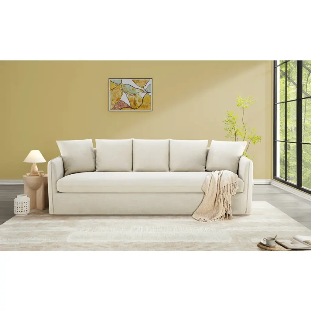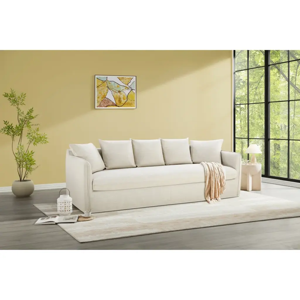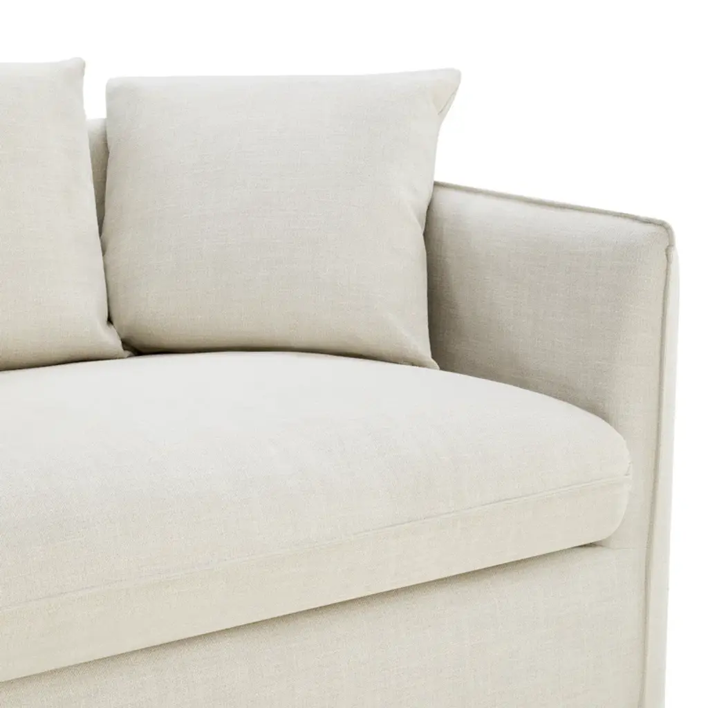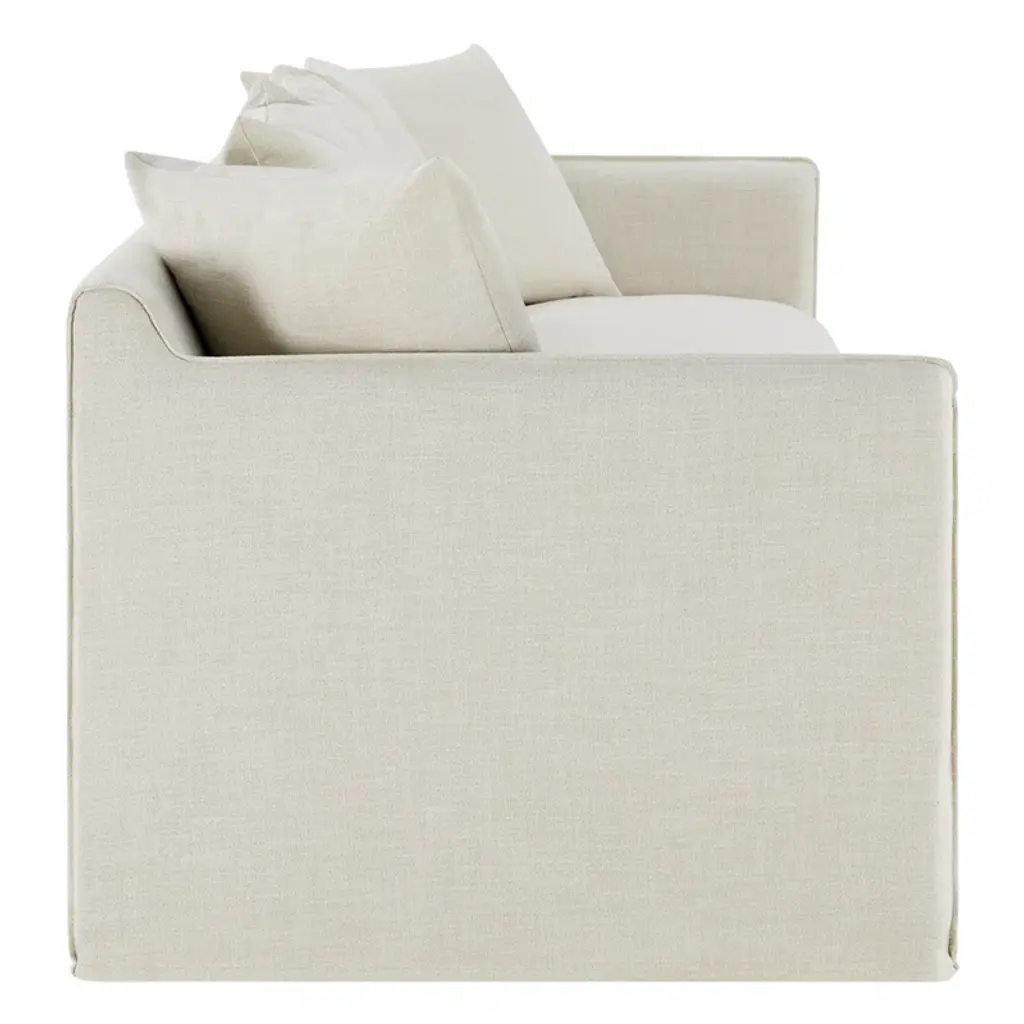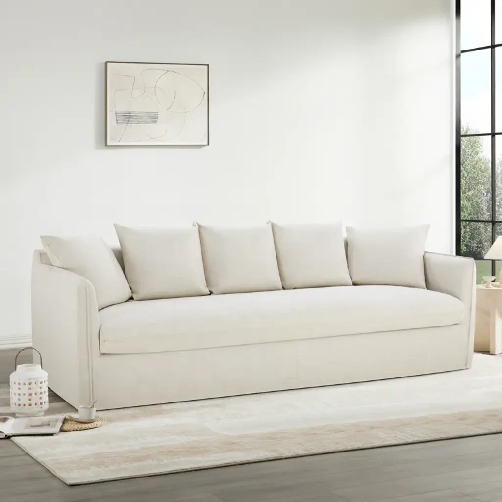 If you are looking to create an aesthetic with a sophisticated yet warm, welcoming feel, look no further than the Louella Upholstered Sofa. A classic design with crisp, clean lines, this sofa creates the perfect timeless centerpiece for your gathering space. Layered loose pillows enhance its luxurious yet approachable feel. The cushions, filled with a high-density foam and feather blend, provide the perfect blend of sink-in comfort and support. A sturdy kiln-dried wood frame reinforced by mortise-and-tenon joinery ensures long-lasting durability. The dual suspension system prevents sagging and enhances your sitting experience. Not only is the Louella sofa beautiful and comfortable, but it is also livable. The seat cushion and loose back pillows are reversible to enhance longevity. Removable covers make cleaning and maintenance easy. With polished yet homey appeal and superb comfort, the Louella Sofa is perfect for curling up with a book, stretching out for a movie night, or gathering with loved ones.