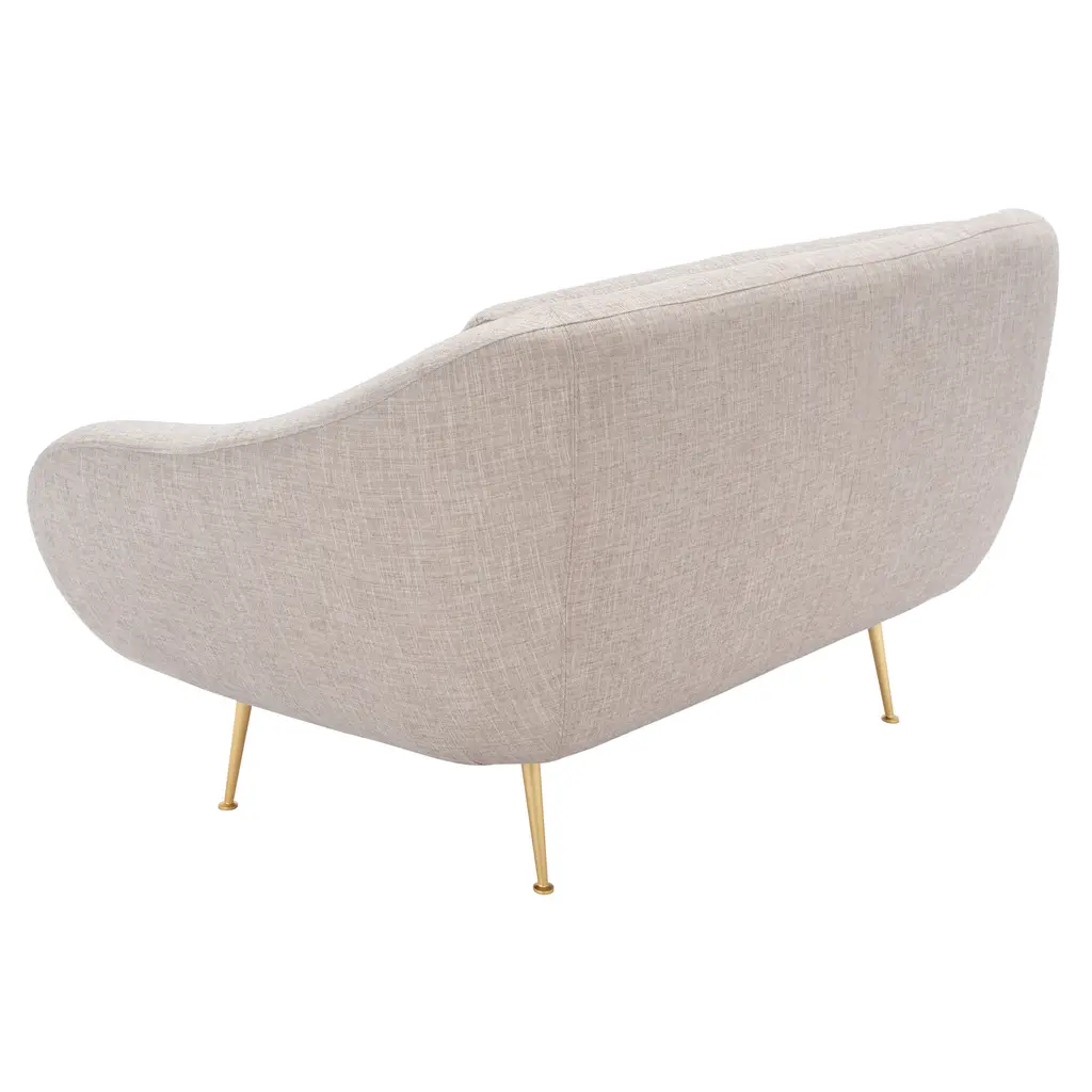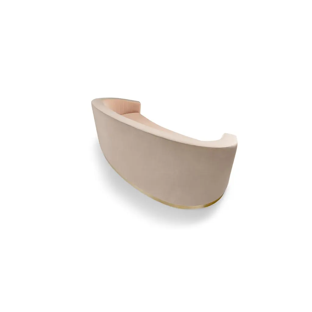 Louise 240 Sofa by MunnaDimensions: D 110 x W 240 x H 83 cm. SH: 45 cm.Materials: Wood, foam, brass, and upholstery.Finish: Cotton Velvet, ref. Desert, CV03, and ref. Pale Pink, CV02 upholstery, and brushed brass footer.Available in all Munna fabrics except Wild Silk. Available in client’s own material. Brass, Nickel or Copper in Polished or Brushed finishing; or in Rosewood, Ebony, Walnut, Wengé stain or lacquer in all RAL colours, in matt or gloss. Handmade in Porto. Please contact us.Established in Porto in 2008, Munna is a furniture design brand renowned for creating handmade upholstery with unmatched craftsmanship, seamlessly blending noble materials and timeless design, for both commercial and residential projects.Made by hand in Porto, Munna’s pieces honor the profound heritage of craftsmanship, while drawing inspiration from history’s most influential artistic periods. Munna’s pieces are made of the finest fabrics such as cotton velvet, twill, leather, and silk; the finest wood veneers, such as ebony, walnut, and rosewood; sumptuous gold, silver, and copper leaves, metal details in brass, nickel, and copper, and superior lacquers.