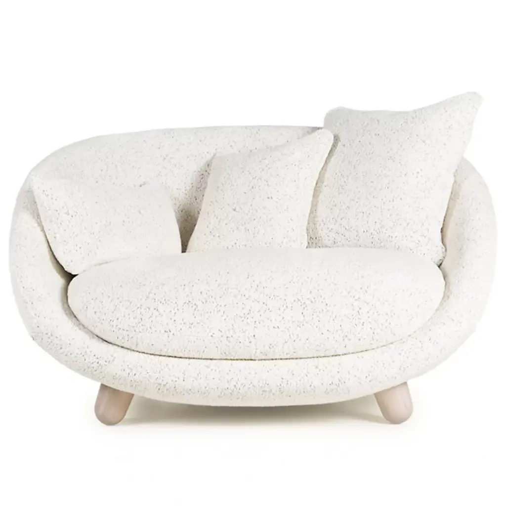 Presented by Moooi and made in The Netherlands, the Love Sofa is an impassioned composition by Marcel Wanders Studio. The symmetry and silhouette of this luxury furnishing draw in the pair of sitters for an intimate vibe. It features a high-quality upholstered bodice that sits on chunky, rounded wooden legs. Marcel's playful, uplifting side of styling comes to life in this piece, making it an attractive piece for placement in a sitting area of choice.