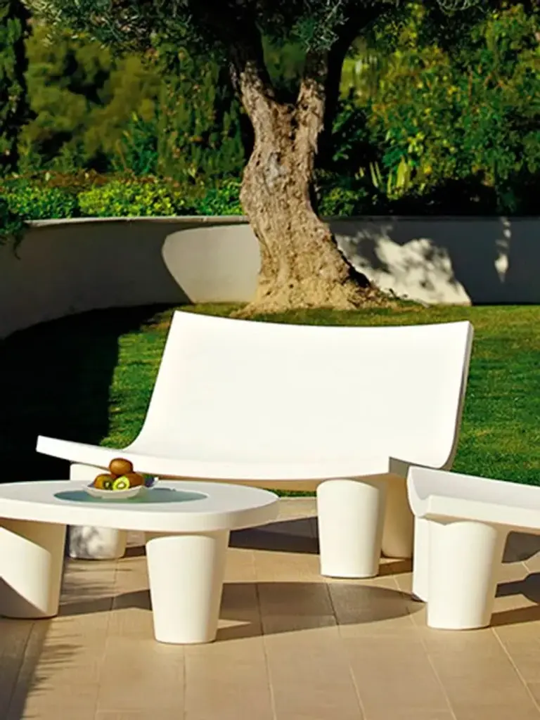 Low Lita Love is a love seat that reminds the playful and contemporary design of the whole Low Lita collection, created by the Italian famous designer Paola Navone. Low Lita Love sofa keeps the main feature of Low Lita collection. The slim design of the seat matches with the four huge legs. The slightly bent backrest makes Low Lita Love comfortable and functional. Low Lita love sofa is ideal in every kind of outdoor settings, for both contract and private houses.