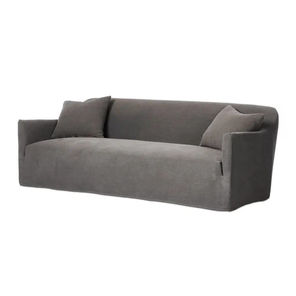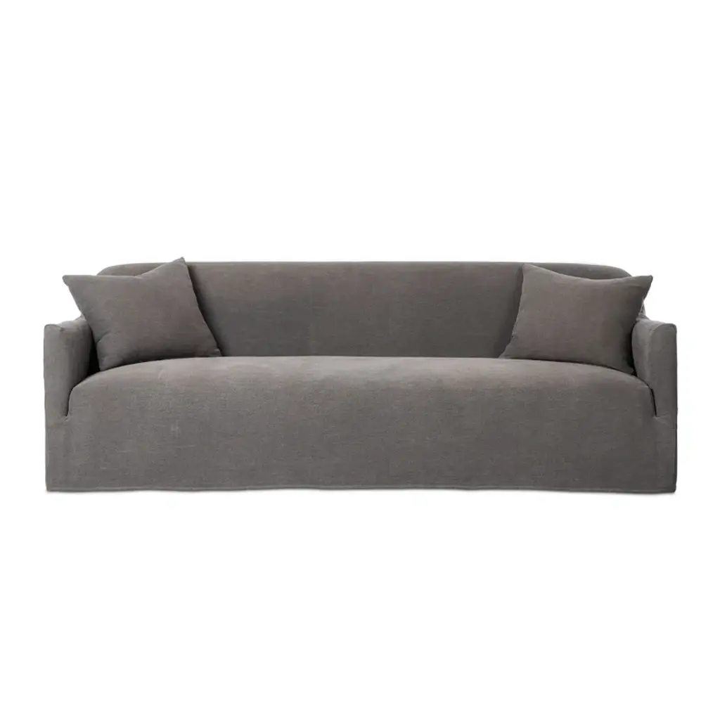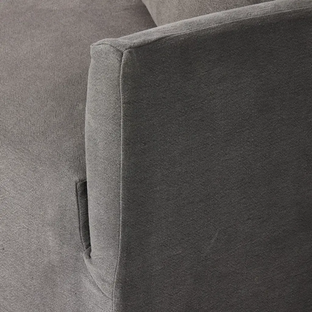 A simple modern design covered in a removable 100% linen slipcover with a tightly tailored look. Designed with subtle slopes all around and fixed seating with S-spring construction. A design collaboration by Amber Lewis and Four Hands.