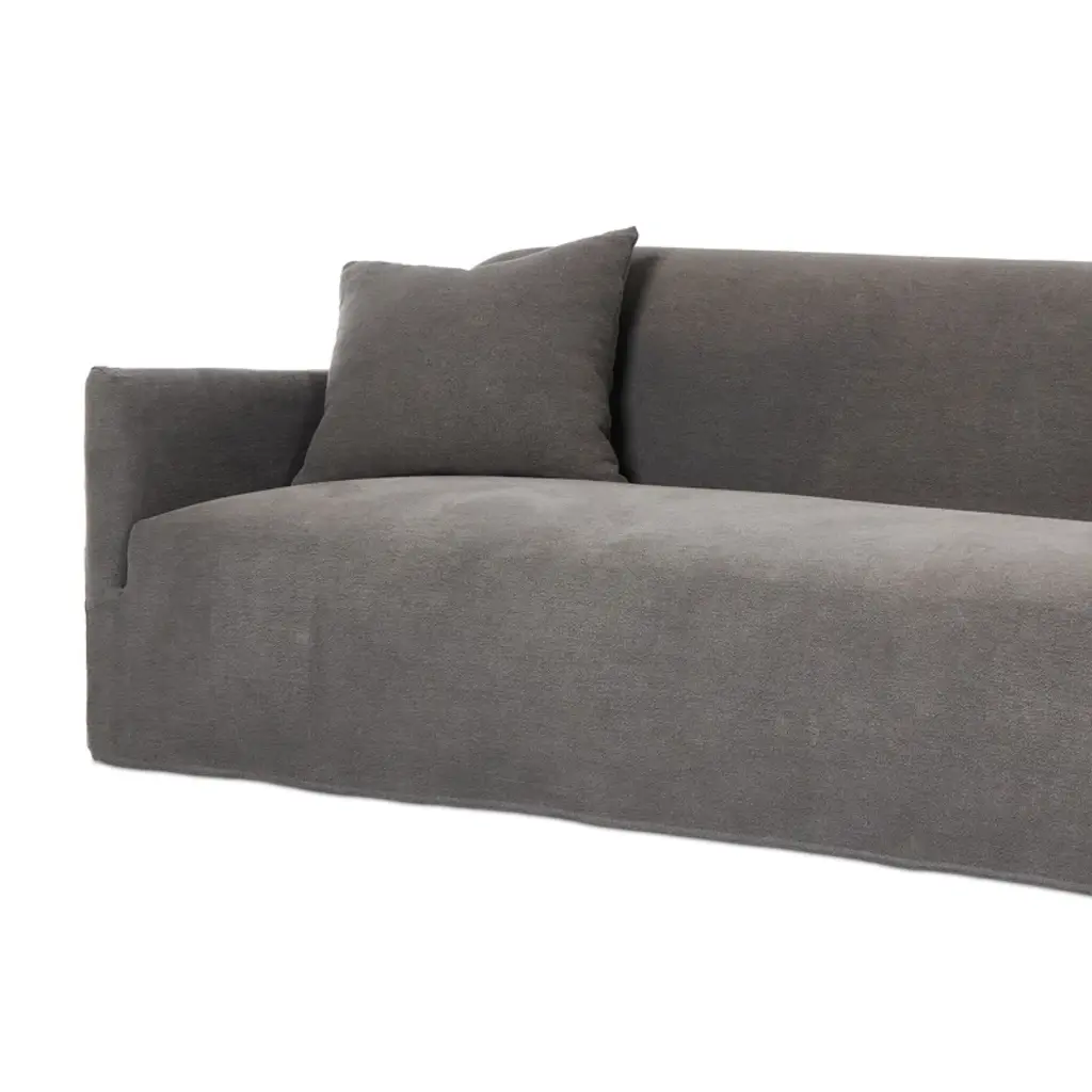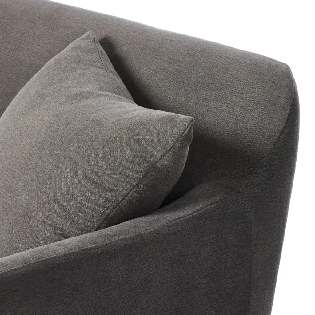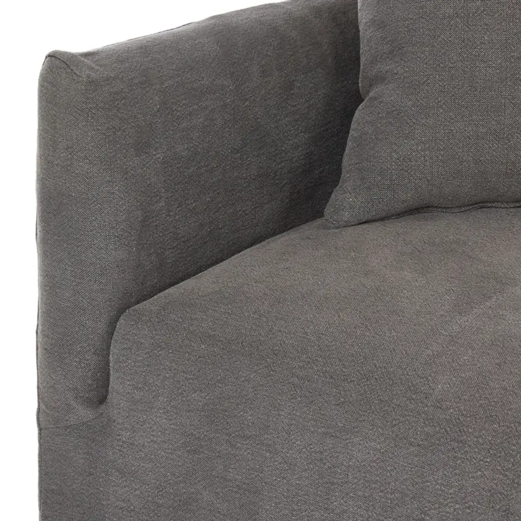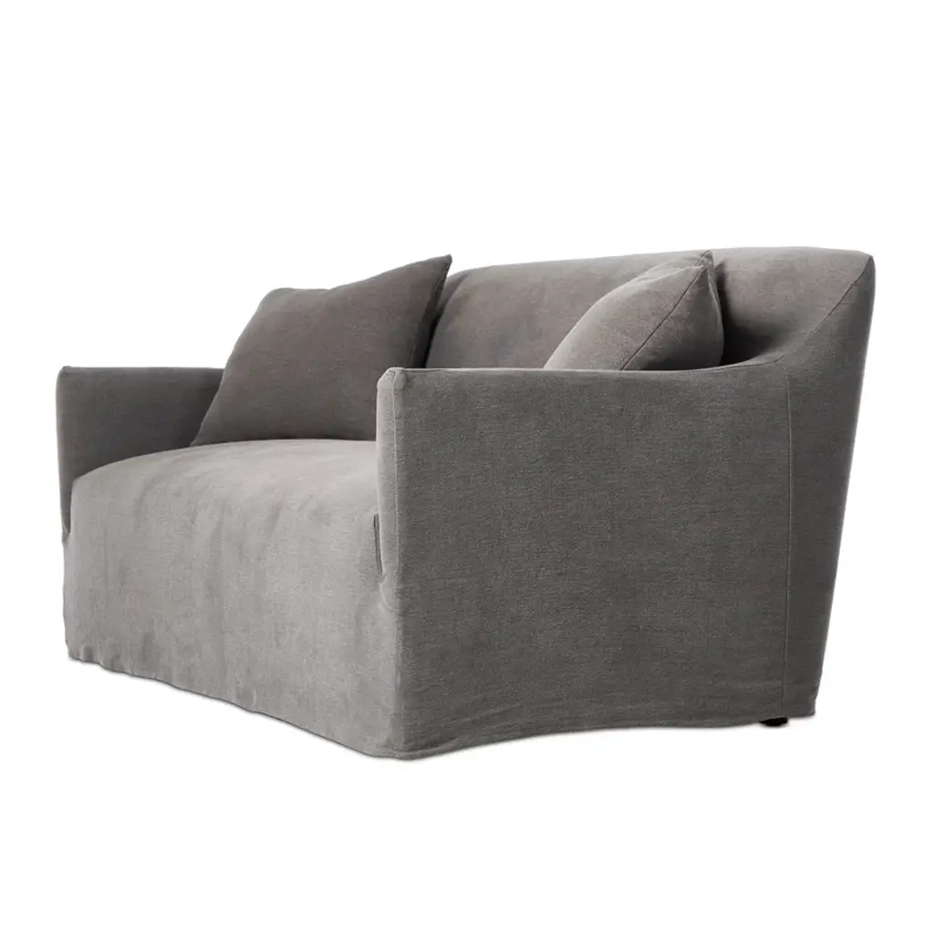 A simple modern design covered in a removable 100% linen slipcover with a tightly tailored look. Designed with subtle slopes all around and fixed seating with S-spring construction. A design collaboration by Amber Lewis and Four Hands.