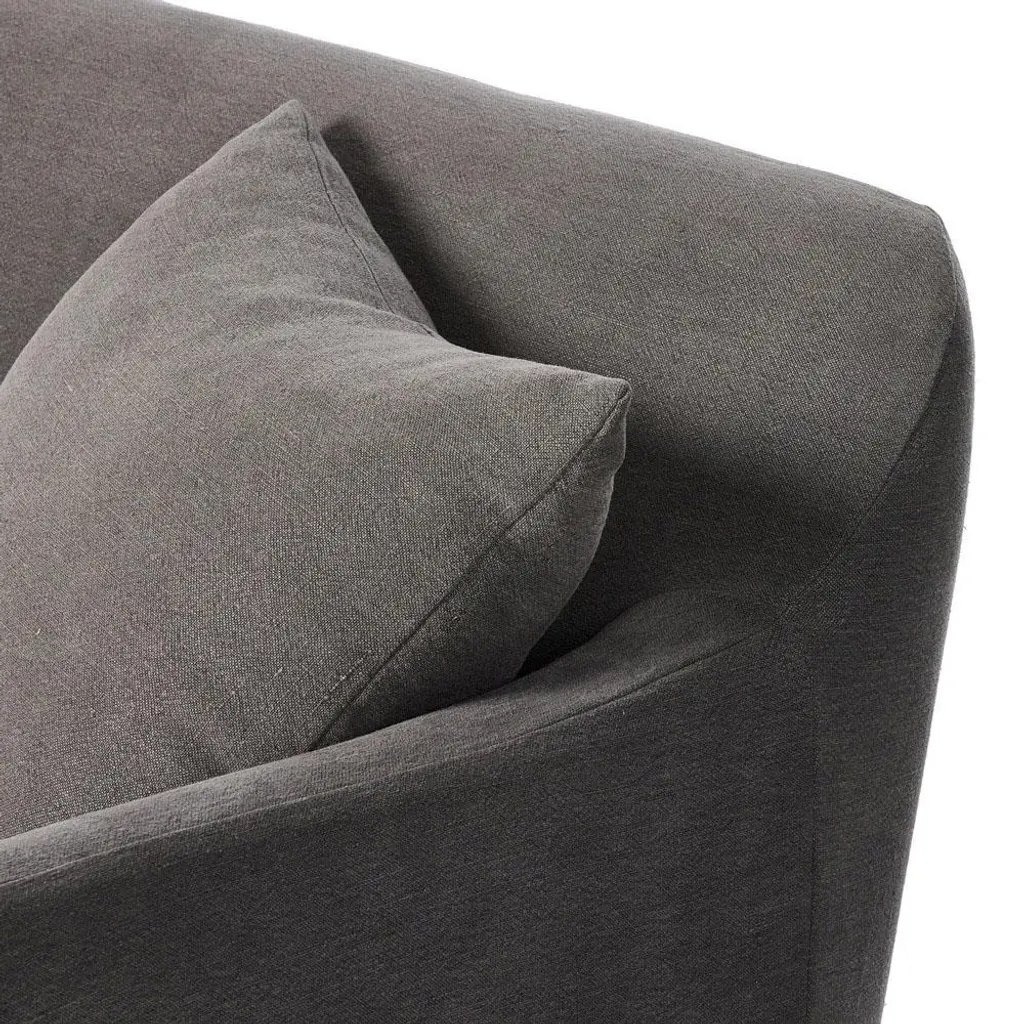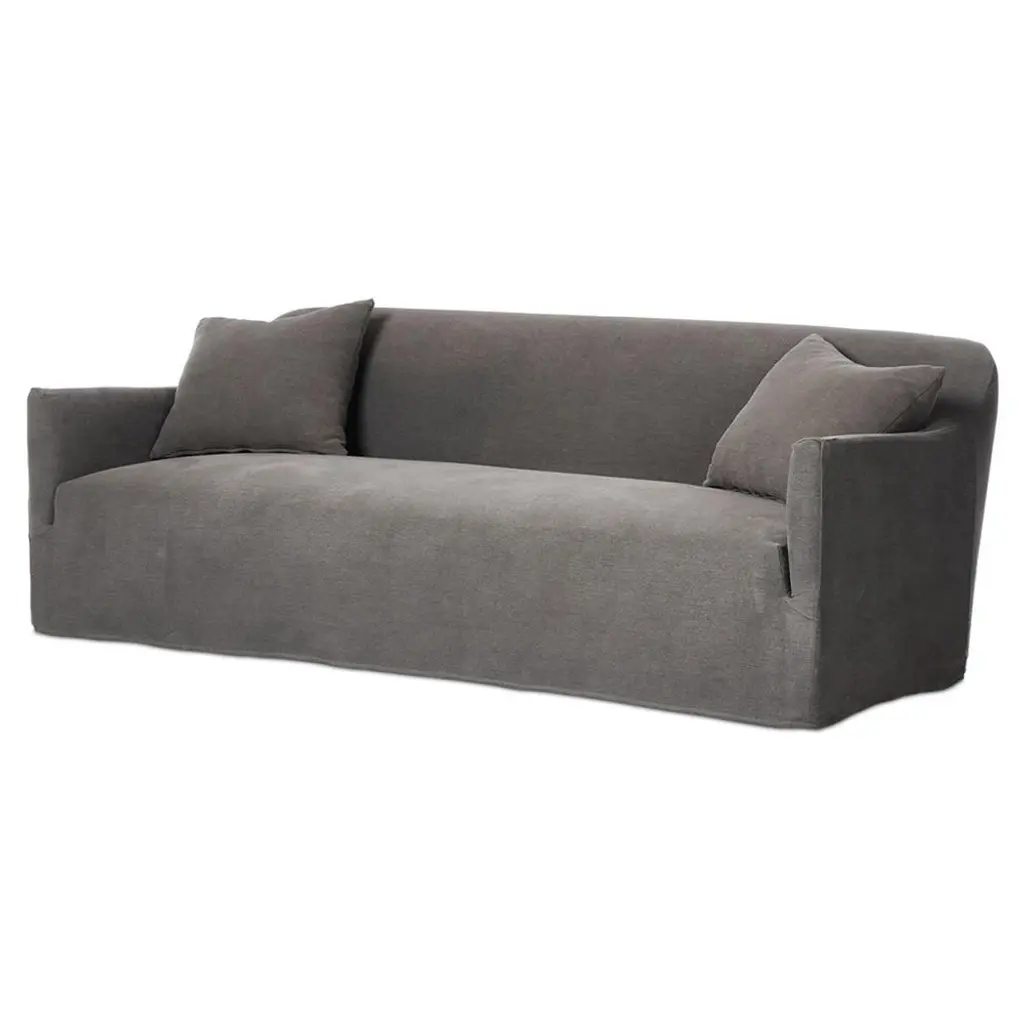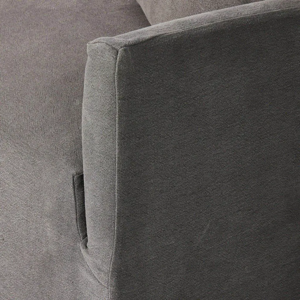 A design collaboration by Amber Lewis and Four Hands. A simple modern design covered in a removable 100% linen slipcover with a tightly tailored look. Designed with subtle slopes all around and fixed seating with S-spring construction.