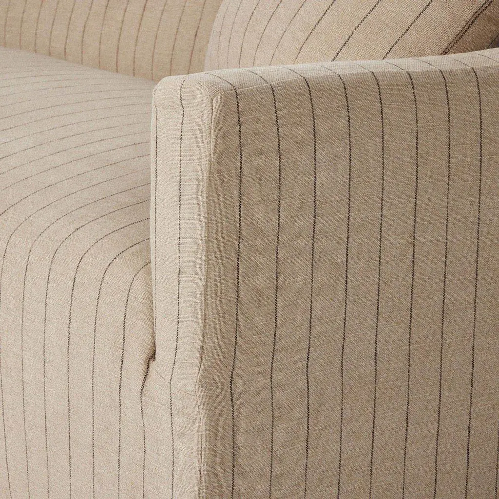 A design collaboration by Amber Lewis and Four Hands. A simple modern design covered in a removable 100% linen slipcover with a tightly tailored look. Designed with subtle slopes all around and fixed seating with S-spring construction.