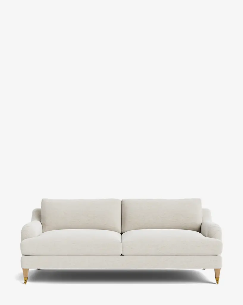 Our Lucille English Roll Arm Sofa is a modern approach to a traditional design. Crafted with luxurious comfort in mind, its classic format features a down wrapped cushion for a perfectly stuffed look and feel. A bench-made alder wood frame adds durability to the design, as four oak wood tapered legs give this sofa a stately presence. Completely customizable in a wide array of fabrics, make the piece your own with either a soft linen, or high performance crypton.