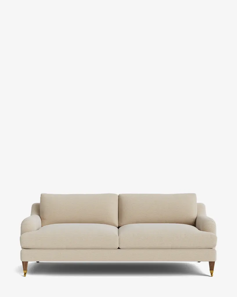 Our Lucille English Roll Arm Sofa is a modern approach to a traditional design. Crafted with luxurious comfort in mind, its classic format features a down wrapped cushion for a perfectly stuffed look and feel. A bench-made alder wood frame adds durability to the design, as four oak wood tapered legs give this sofa a stately presence. Completely customizable in a wide array of fabrics, make the piece your own with either a soft linen, or high performance crypton.