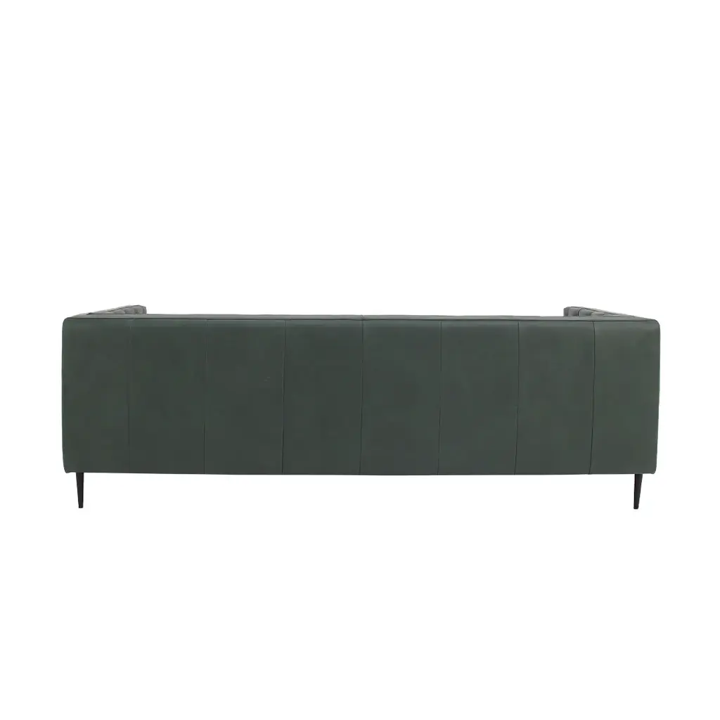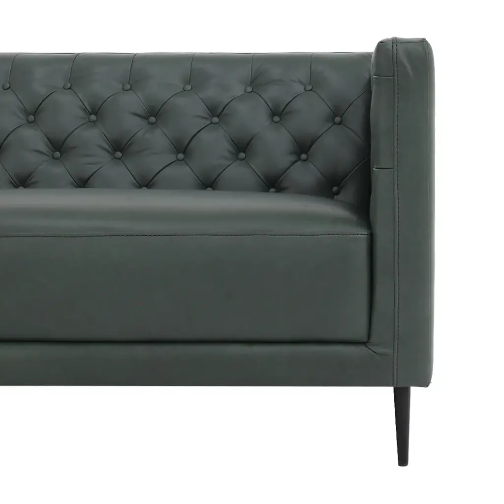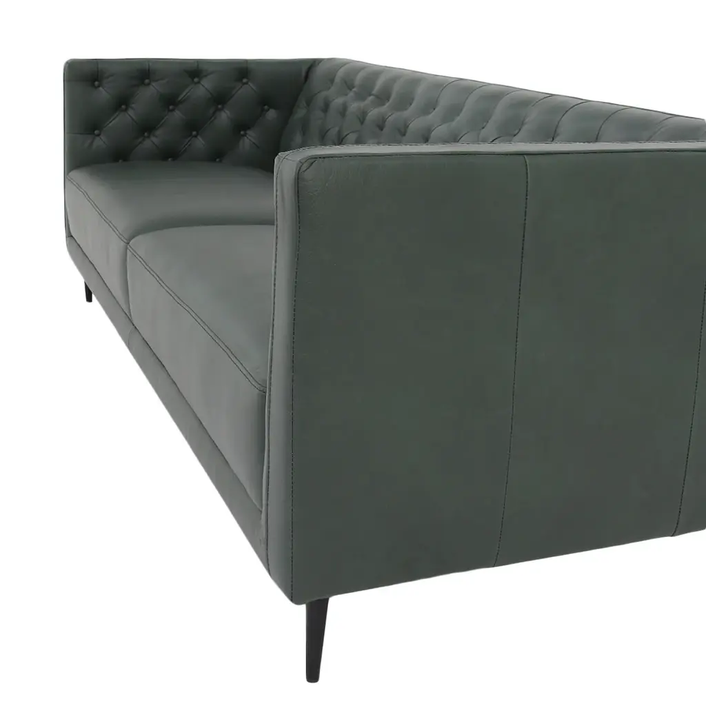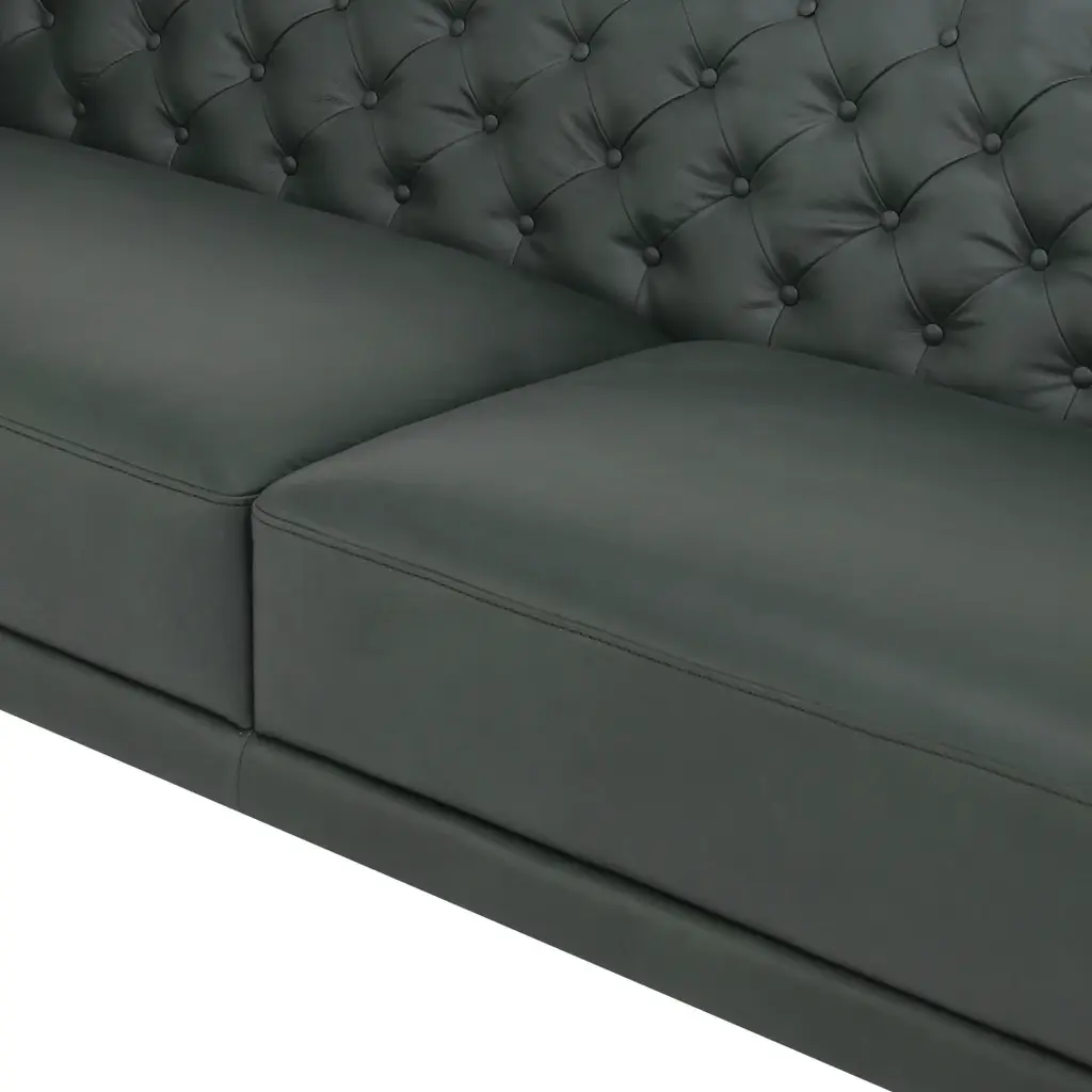 We have taken a different spin on a Chesterfield sofa. Still have the tufted back but a whole new modern, cozy design with higher back and arm rests. The collection also comes with a chair. Add that to your living room and it will just be beautiful. - Top Grain Italian Leather with vintage flair - Full leather (all sides and the back are also top grain vintage Italian leather...lesser quality products are half leather meaning sides and back are split leather) - Comfortable seat and back cushion - Leather is a natural material and actual color & distressing will vary slightly Dimensions: Overall: 90.50w x 36d x 30h Inside seating: 81w x 25d x 18.5h Seat cushion width: 41.50" Seat depth: 25" Seat height: 18.50" Armrest height: 30"