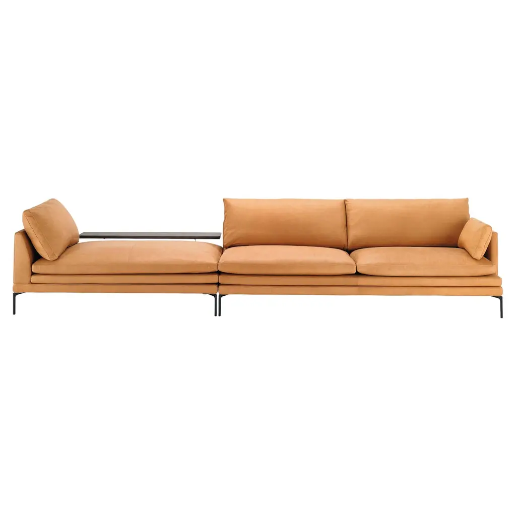 Luizet canapé by luca nichetto dimensions: w 249 x d 89 x h 82 cm materials: black powder coated aluminium and metal structure, cast aluminium legs upholstery: fabric or leather as in a game that frees the imagination and possibilities, luizet is a modular sofa system that invites to combine together various elements by a distinctive geometry. An arched angular piece, a central square and a circular one, available both as a table and as a pouf, are the foundation for a variety of settings. Supported by a discrete and elegant metal frame, the three modules can be juxtaposed and mixed with the addition of cylindrical and rectangular cushions for the backrest. From a classic three seater sofa to a number of wider and more complex solutions. This piece is attributed to the mentioned designer/maker. It has no attribution mark and no official proof of authenticity, however it is well documented in design history. I take full responsibility for any authenticity issues arising from misattribution