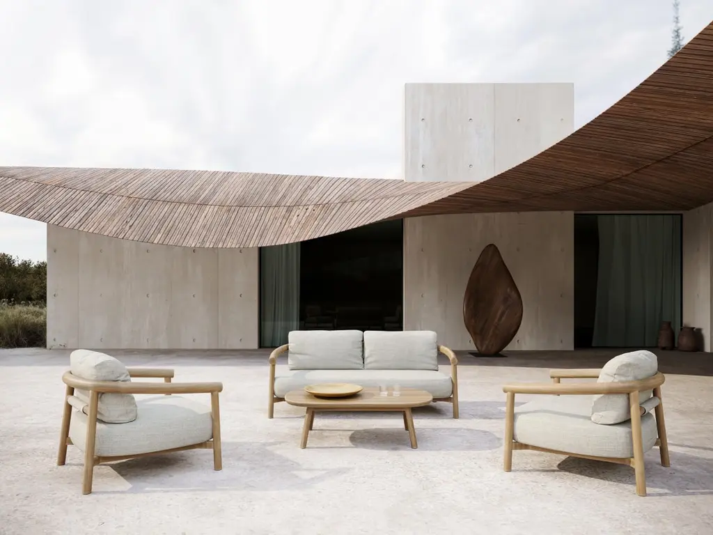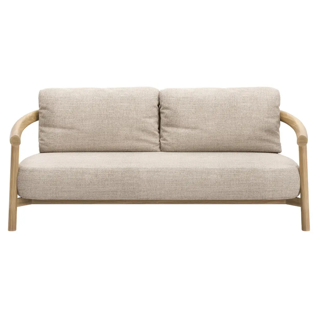 Lyora Teak Wood And Ethereal Fabric Upholstery Three-Seater Sofa by SNOCDimensions: D 88 x W 221,5 x H 68 cm. SH: 42 cm.Materials: Teak wood and Ethereal fabric. A delicate mid-century style, tempered by contemporary and eclectic incursions to create an elegant, but never flashy product. Simple lines, geometric shapes for a style that recalls functionality, but with class, to give every environment a touch of absolute uniqueness, elegance, and, why not, a pinch of history. The structure, entirely made of Teak wood, is embellished with fine workmanship to maximize its functionality and ergonomics. The collection is available in armchairs, two-seater and three-seater sofas with compact dimensions, as well as a modular unit featuring enveloping lines.SnocSince their foundation in 2004, SNOC’s history has been interwoven with that of international design. Each chapter written with care, each product reflecting its passion. The company understands that a real story exists behind each object and behind that story, a real person desiring something more. Their ever-developing methodology focuses on defining the core of a brand and utilizing those characteristics to help nurture its soul, aiding in forging real connections. This approach , results in their unique “work in progress” style: original, versatile solutions that in their signature blend of sound, vision and design best-suit every environment and situation, arousing a range of emotions on a daily basis as well as standing the test of time.Driven by functional research, an inclusive project and product culture, and deep care for the environment, we exist as the timeless yet present essence of outdoor furniture design elevating private and public space a like with thoughtfully presented, endlessly adaptive creations.