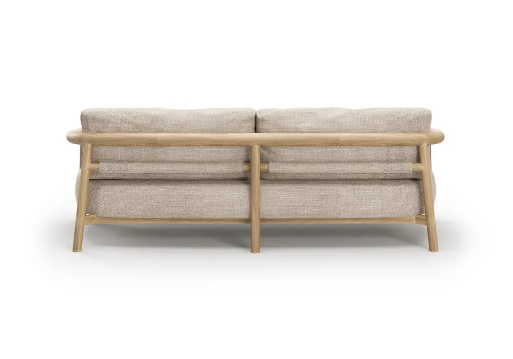 Lyora Teak Wood And Ethereal Fabric Upholstery Three-Seater Sofa By Snoc