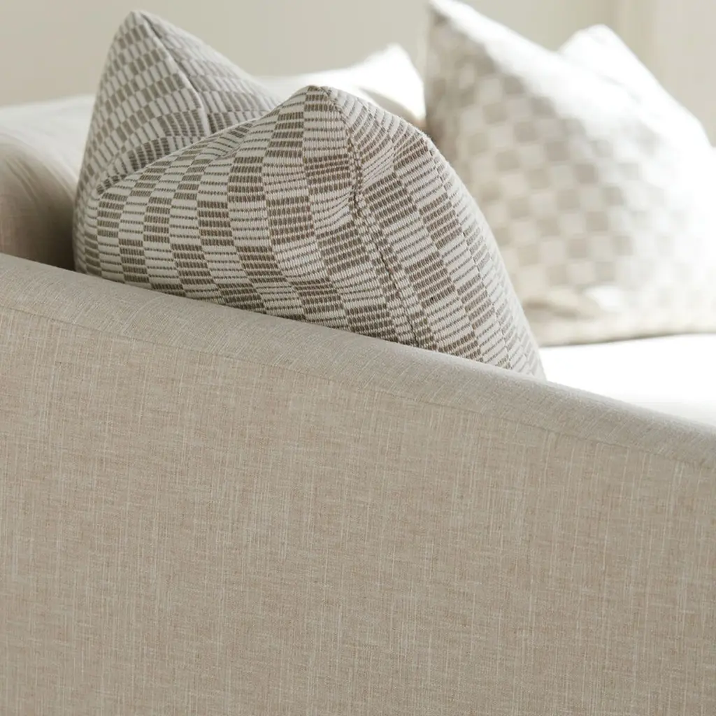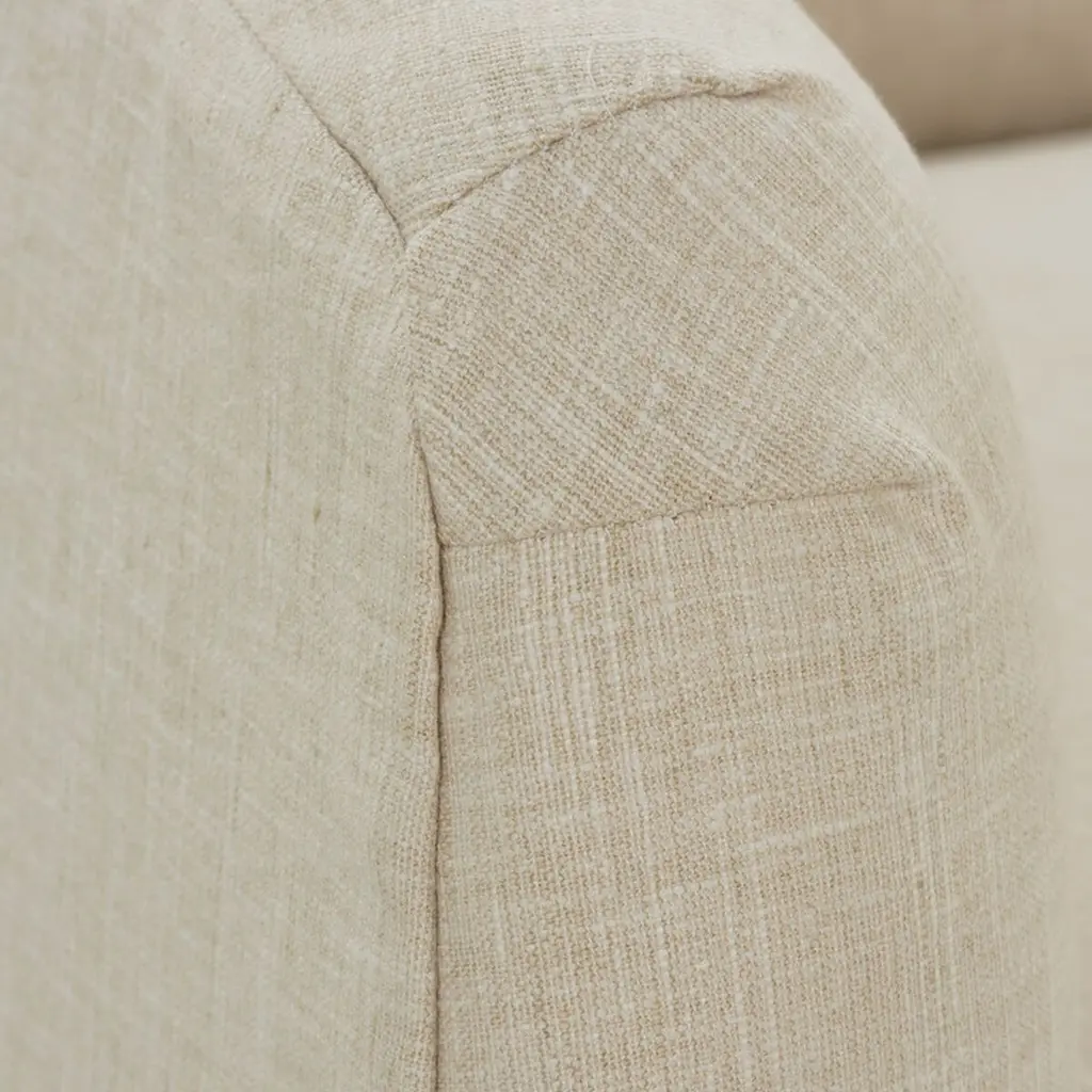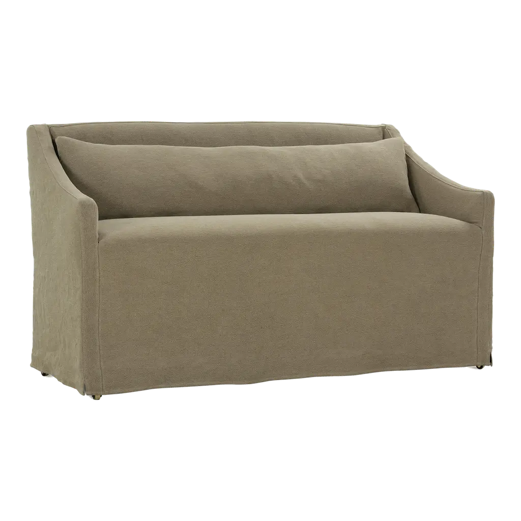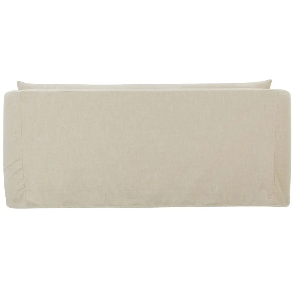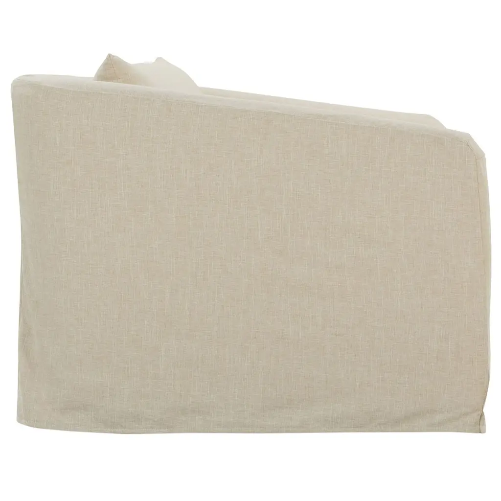 With the Mabel Slipcover Sofa, a sleek, minimal design takes center stage. The single cushion back and bench seat are brought into focus by the slim, gently-sloping track arms. Equally at home in both modern and traditional settings, the sofa brings an elevated comfort to any space. The linen-like feel of the material adds a touch of elegance and sophistication.