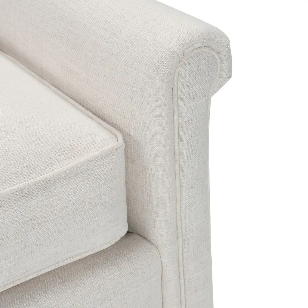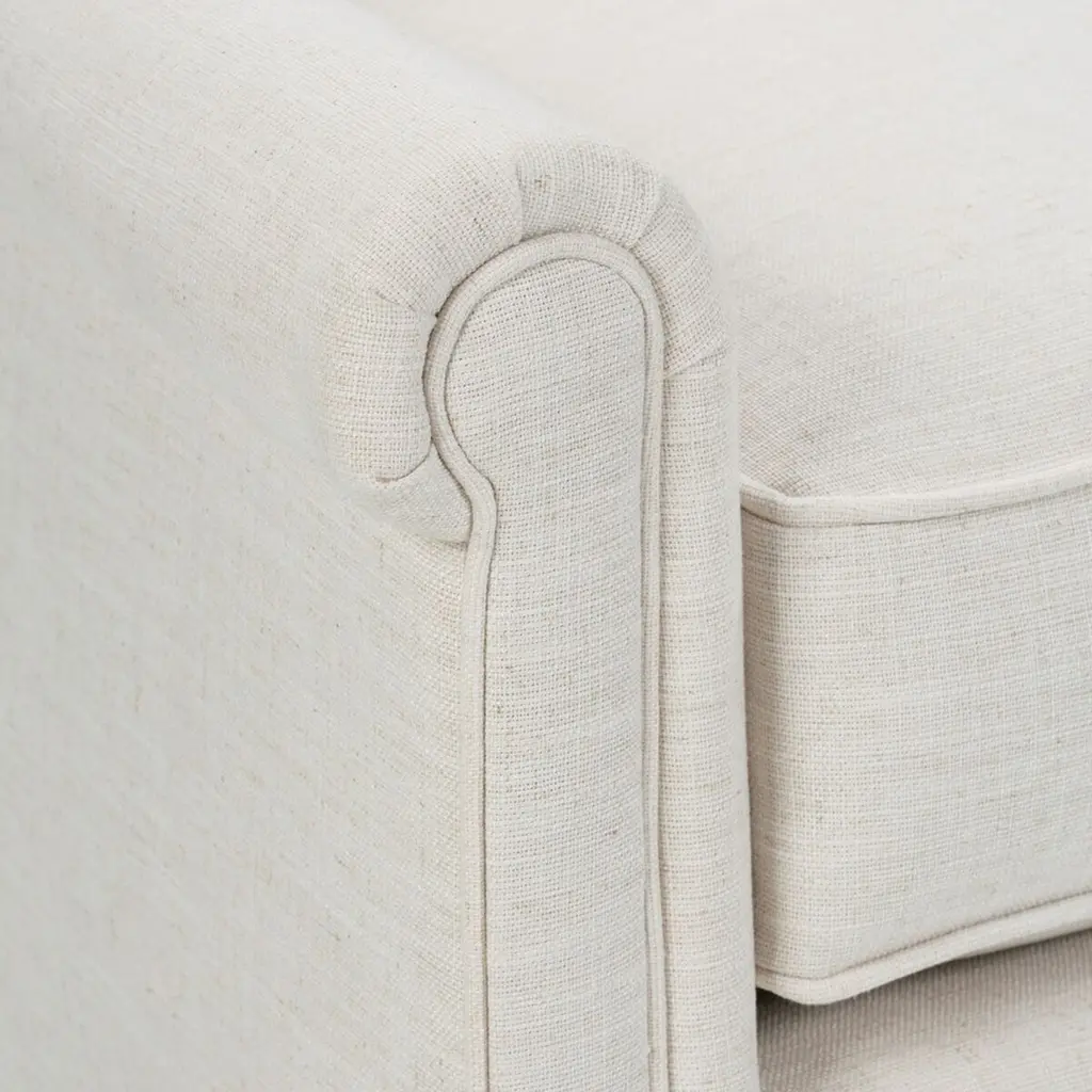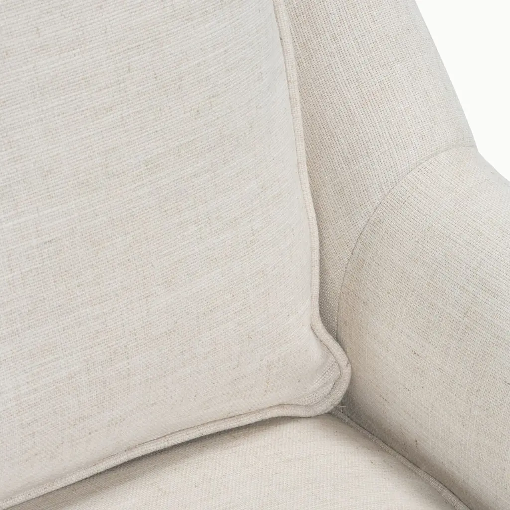 The Mackenzie Roll-Arm Sofa is a masterclass in updated mid-century modernism. Featuring elegant sloping arms, exquisite tailoring, and slim, tapered legs, this sofa embodies timeless sophistication. The material feels linen-like, adding a touch of refined comfort to any living space. Includes two 18" pillows for added style and support.