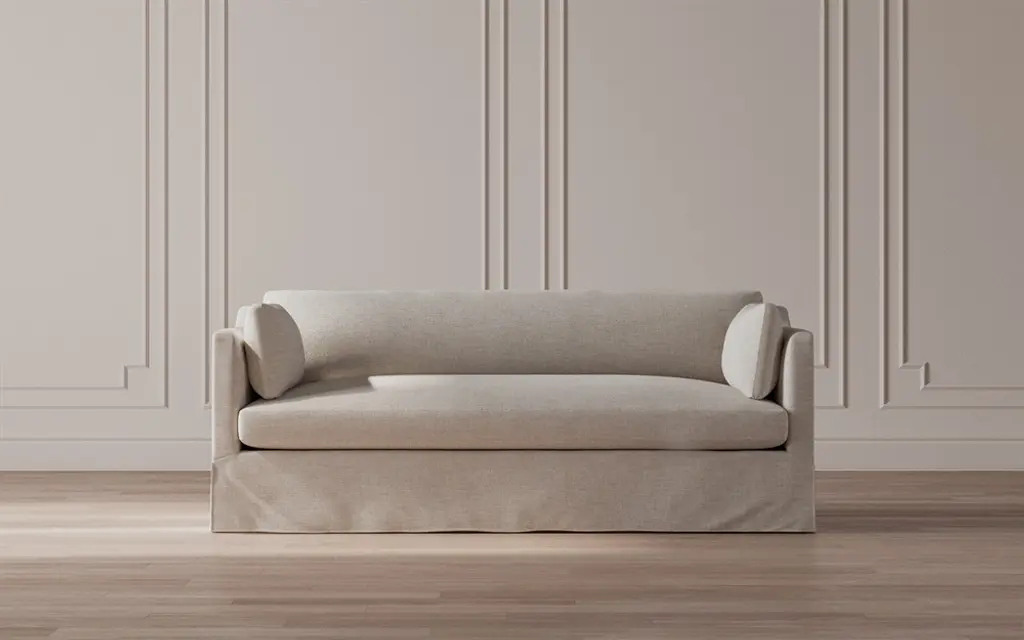 With clean lines and a balanced silhouette, the 84" Madeline slipcovered sofa is effortlessly relaxed and versatile. Soft yet supportive, the seat cushion is designed for supreme comfort, with a foam core surrounded by a blend of fiber, down, and feather fill. A pair of bolster pillows flanks the sophisticated bench seat. Choose from washable slipcover fabrics in a variety of serene hues.