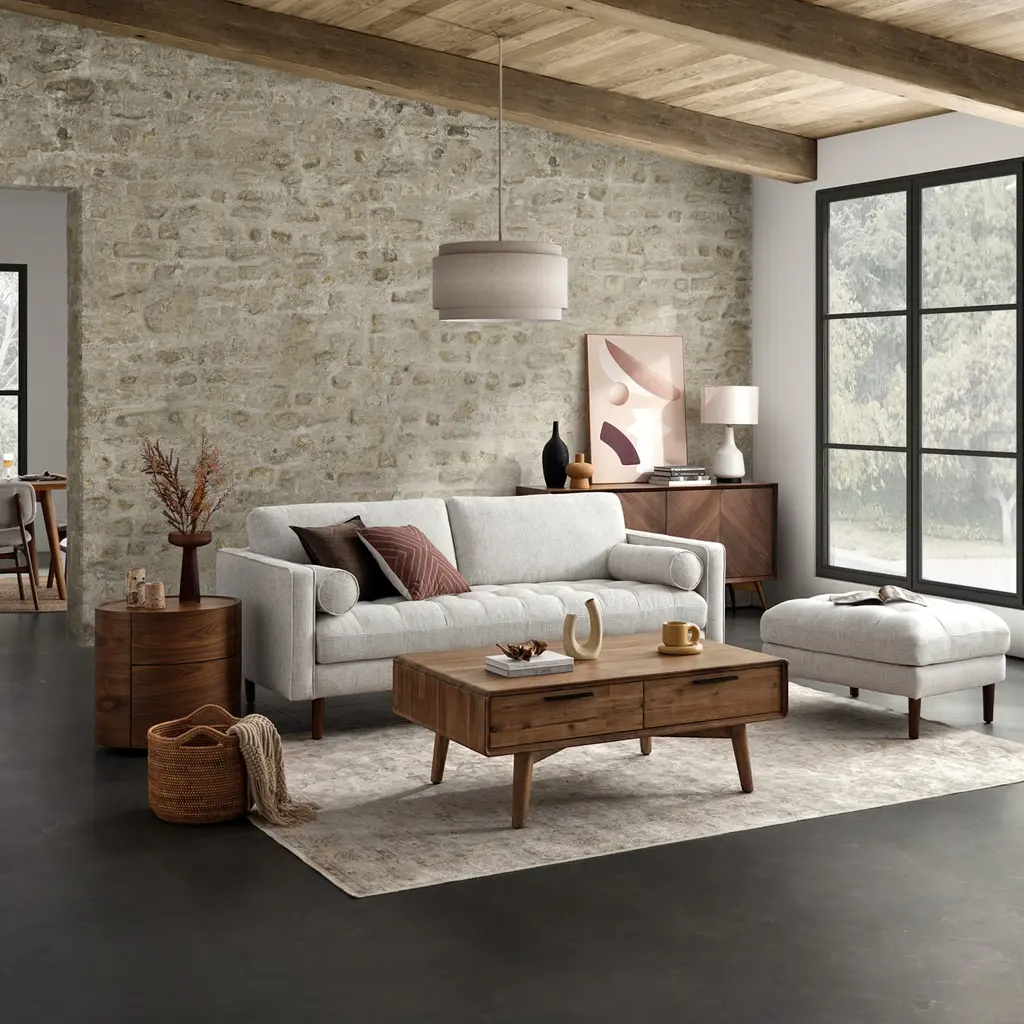 Madison is a quintessential mid-century modern sofa with classic biscuit tufting, round bolsters and tapered legs.