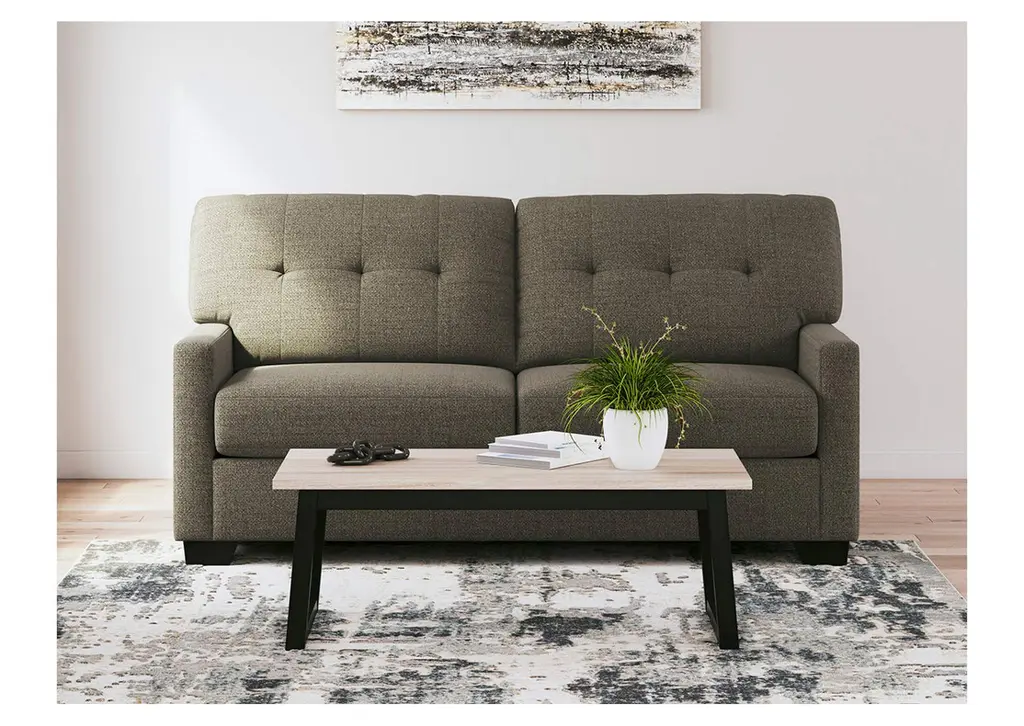 Reliable comfort, reimagined. Suitable for a variety of spaces, the Mahoney sofa invites you to say hello to approachable, everyday style. It expertly balances classic details, like a tufted back, with a contemporary structure. Satisfyingly soft, multi-hued upholstery rounds out the relaxed feel of this smartly designed piece. Weight 119.000 lbs. (53.55kgs.)
