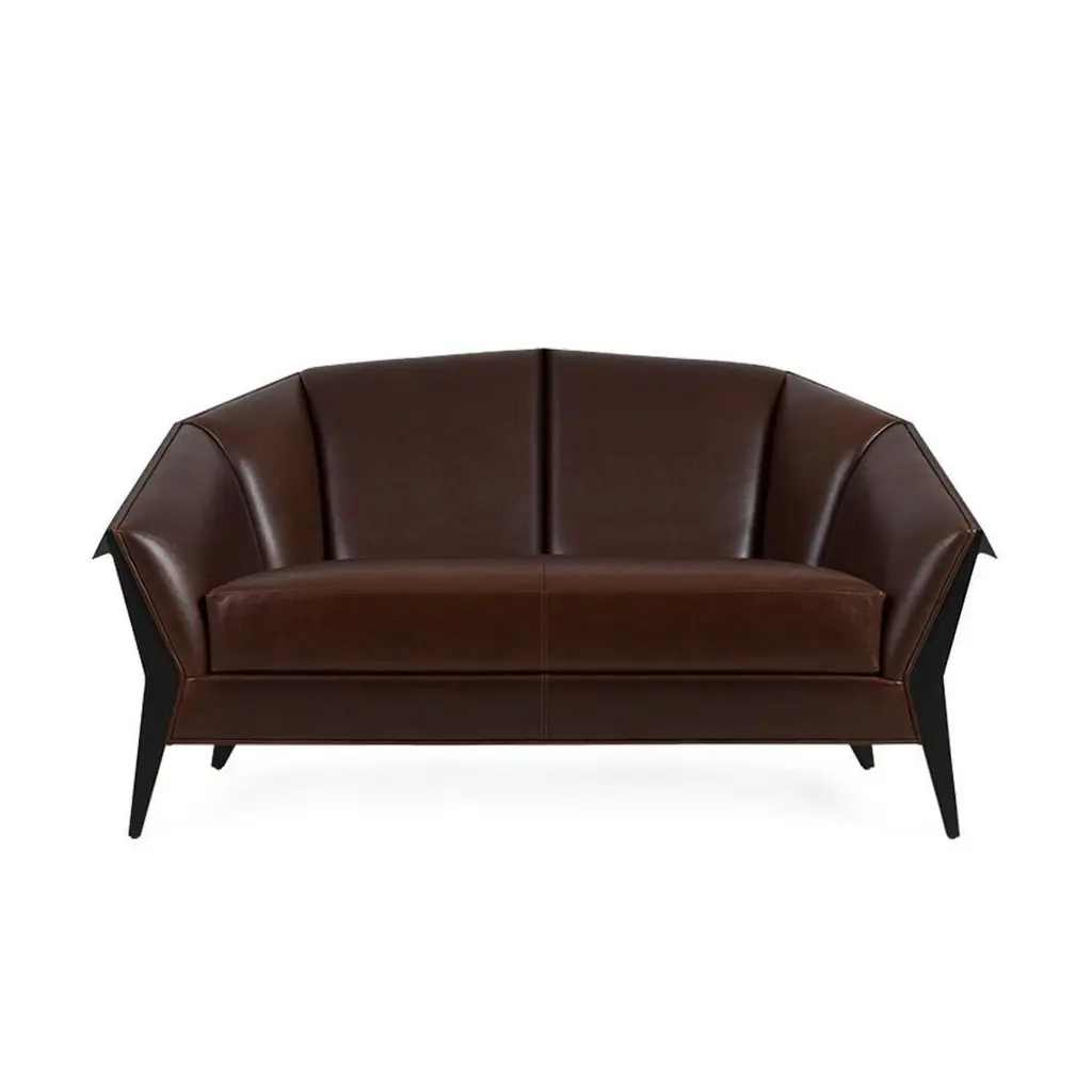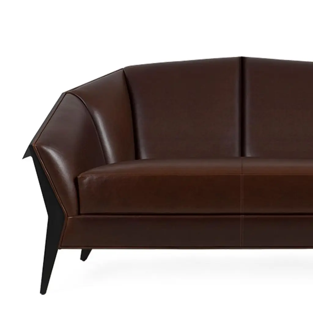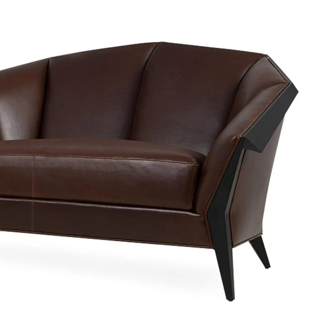 Sofa main office with structure in solid mahogany wood,With tenon frame and doweled mortise in solid mahogany.Upholstered and coated with natural genuine leatherin brown color. Feet and frame in black satin finish.
