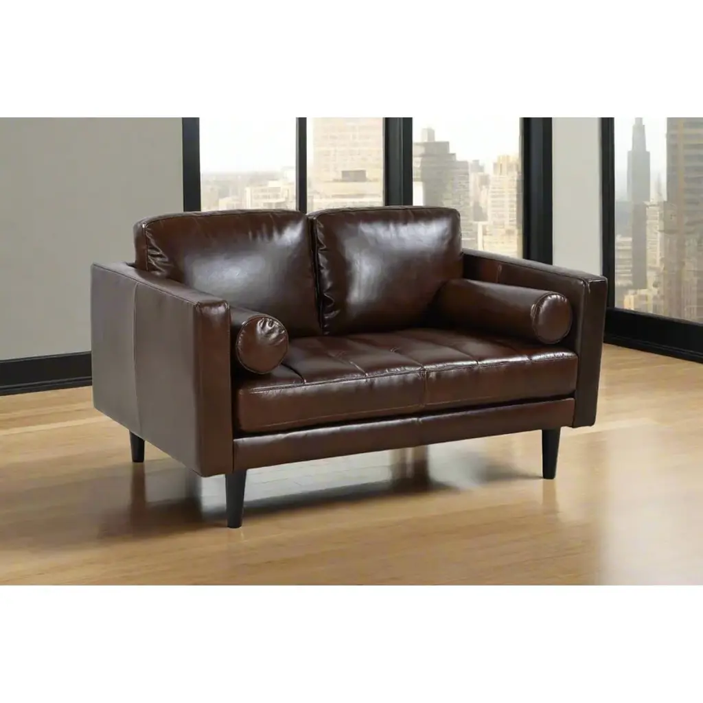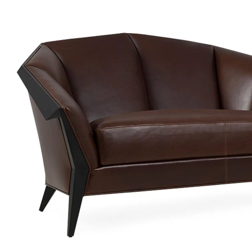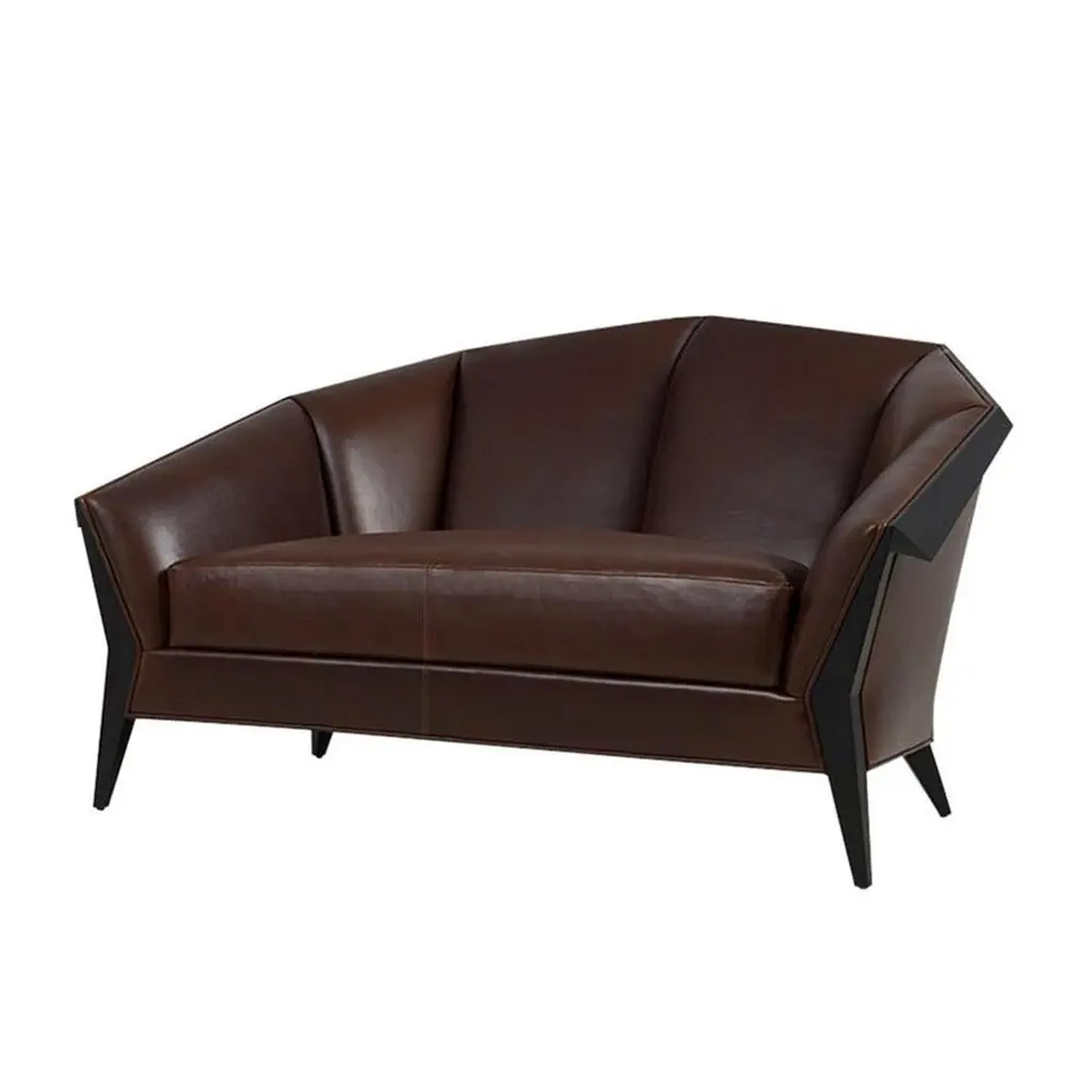 Sofa main office with structure in solid mahogany wood,With tenon frame and doweled mortise in solid mahogany.Upholstered and coated with natural genuine leatherin brown color. Feet and frame in black satin finish.