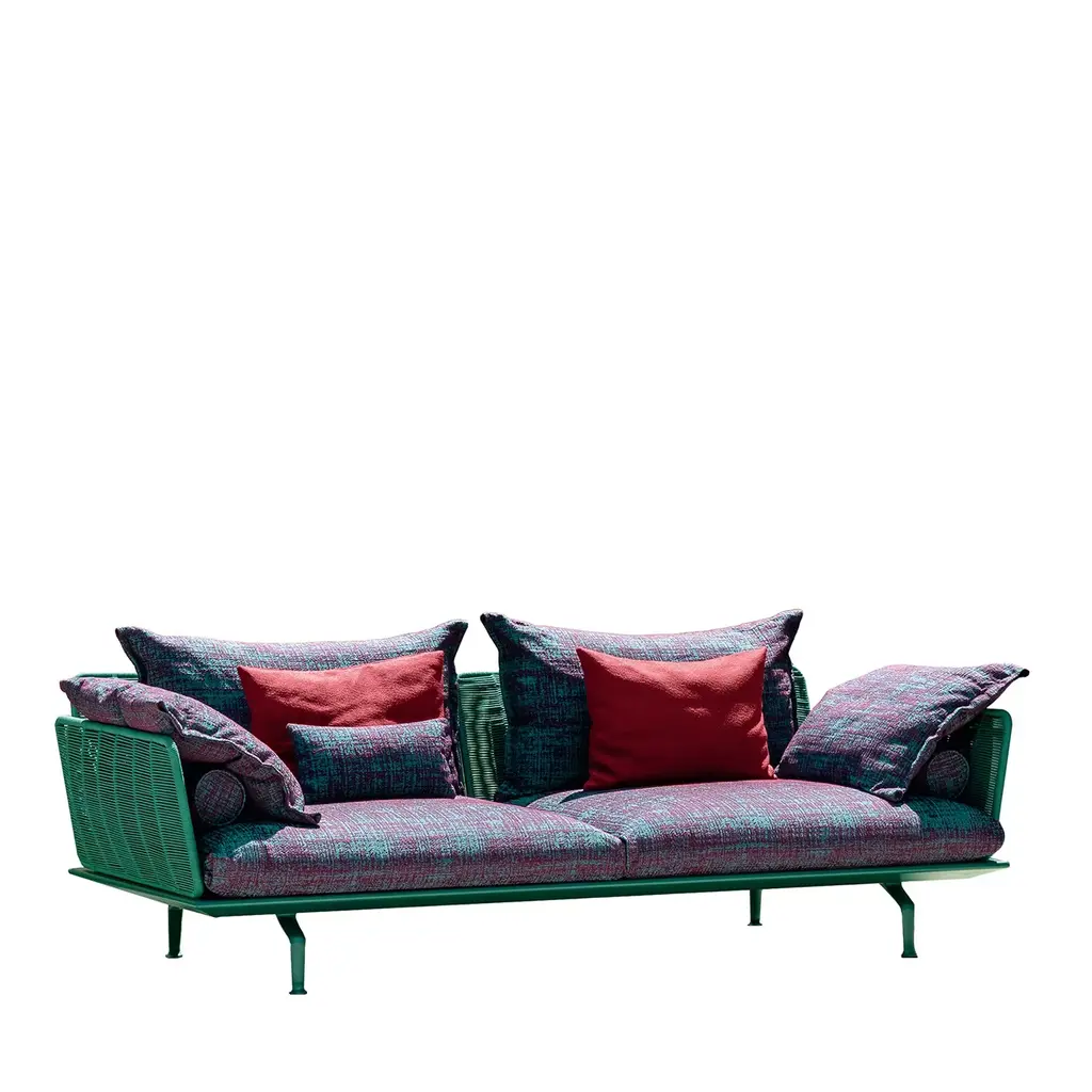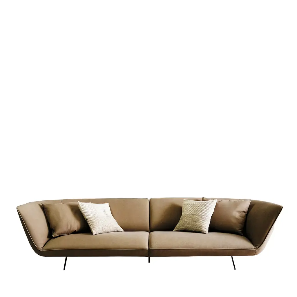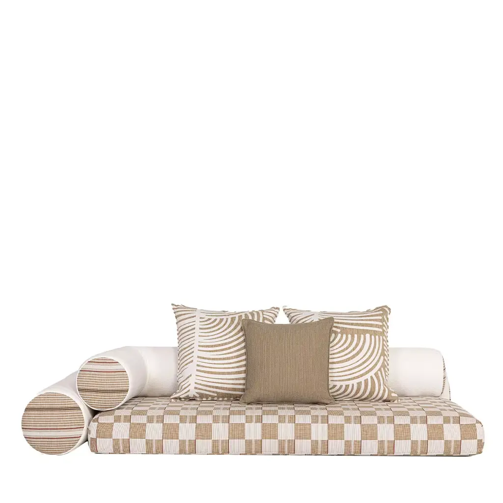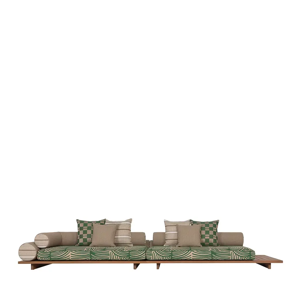 Majlis takes its name from a traditional space in use in Arab countries, dedicated to hospitality and conviviality. It is a modular seating system with generous dimensions, rounded shapes and exceptional seating comfort. It is characterized by a large seat cushion that is embraced by two rollers in different diameters and densities that perform as backrests. A breathable water-repellent fabric covers the insert. The price includes the decorative cushions, as shown in the image, and the protective cover for each module.