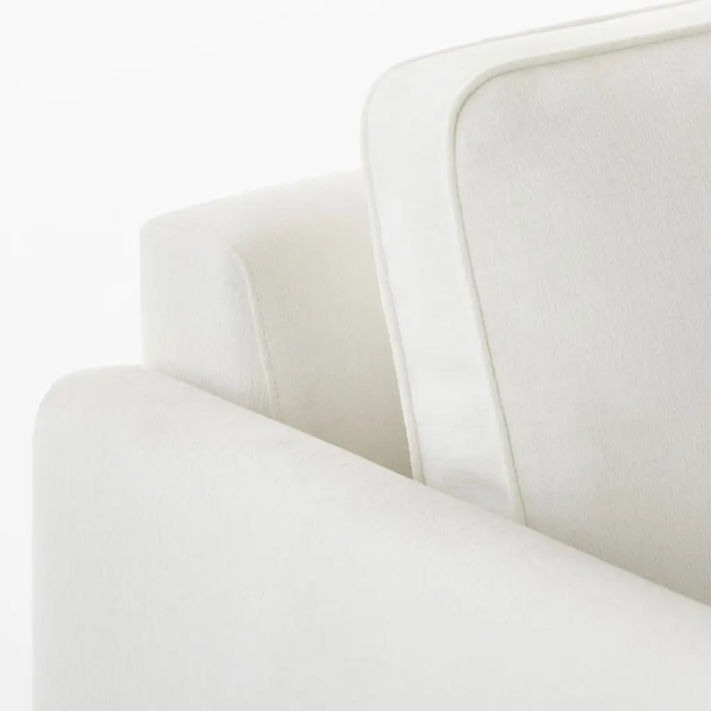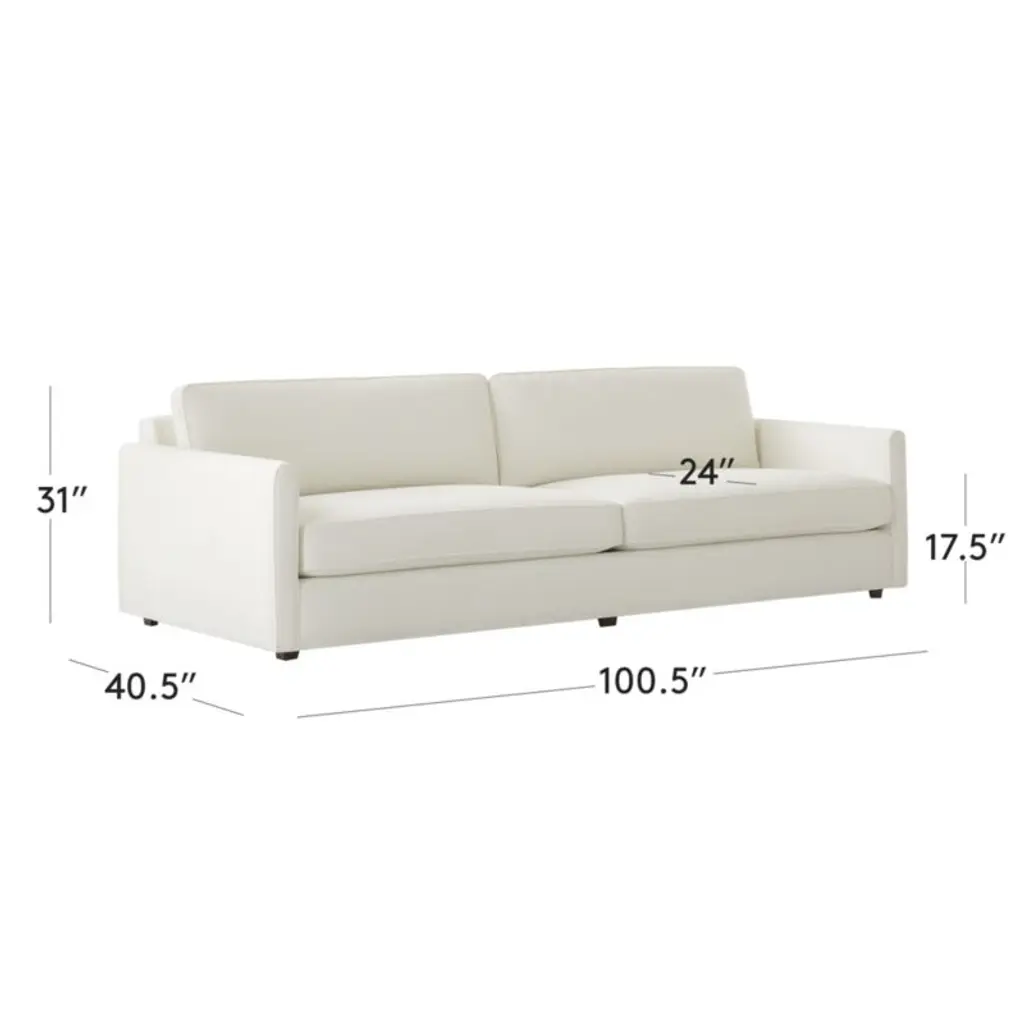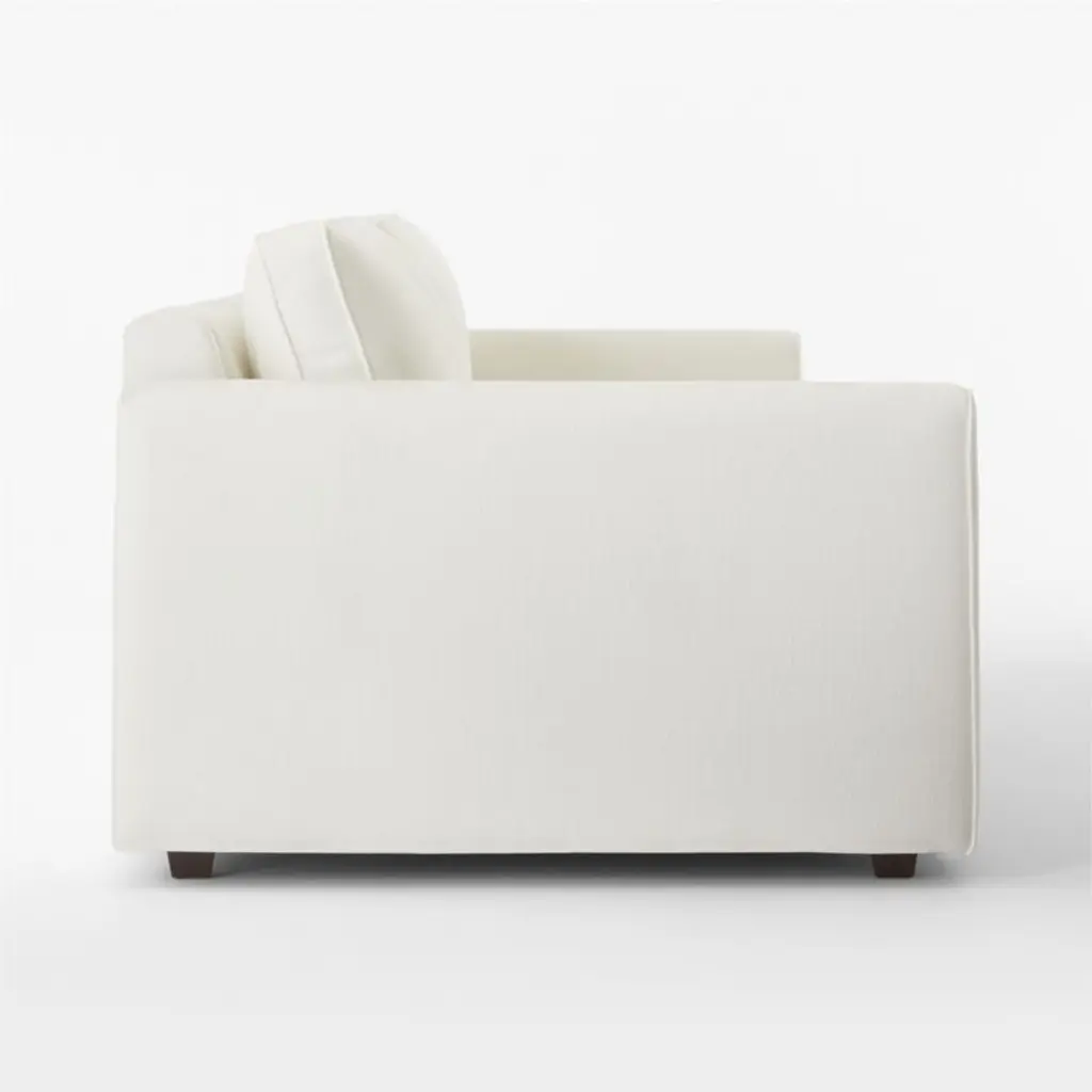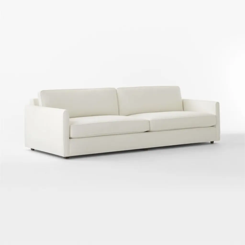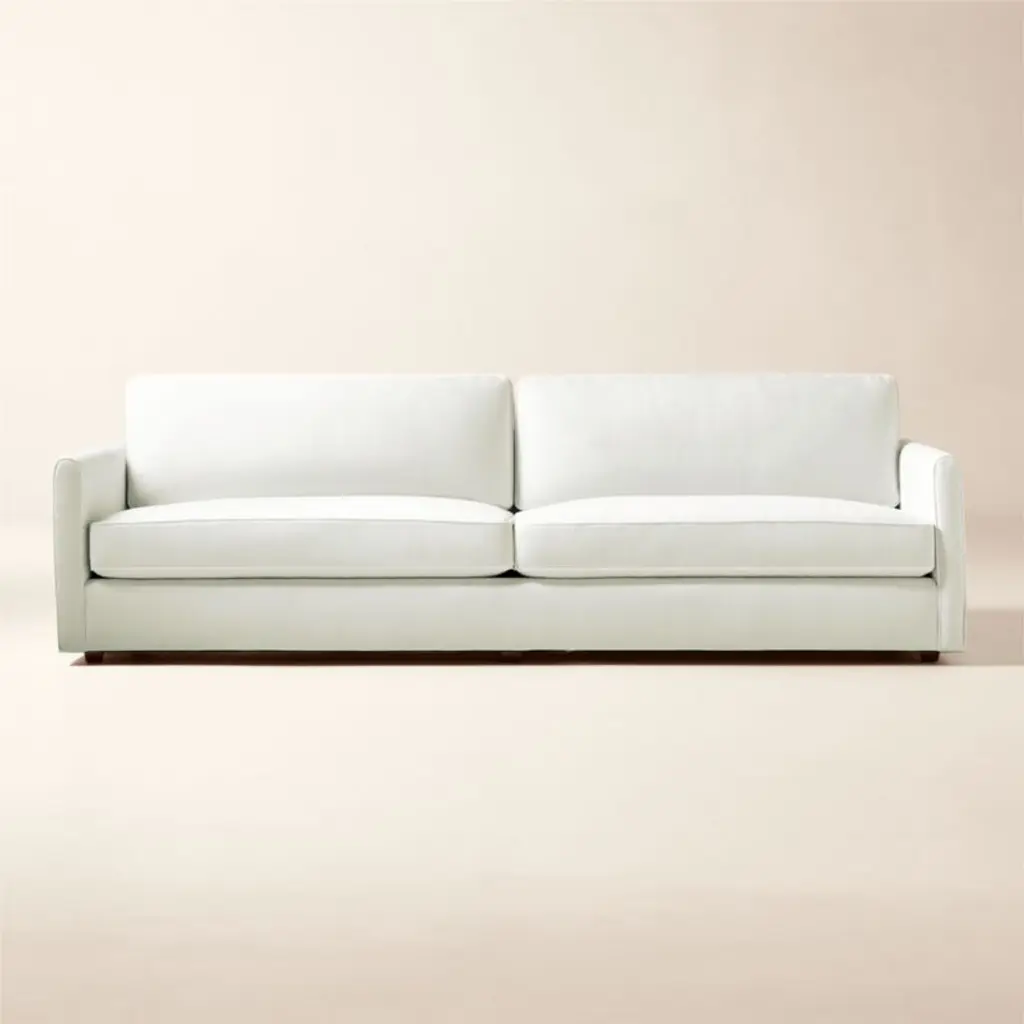 The Malea sofa is the perfect balance of refined, modern style and inviting comfort. Featuring a frame hand-assembled in America from kiln-dried, precision-cut wood with reinforced joinery for durability, the sofa's slim track arms give the piece a sense of lightness despite its oversized proportions. Constructed for performance, Crypton poly-linen basketweave upholstery feels like a plush chenille with a hint of linen. Easy to clean, this highly resilient fabric can withstand plenty of wear and continue to look fresh. Packed with an ultra-comfortable feather and down-blend, the deep cushions are key to the chair's lounge-worthy appeal, while giving it just the right amount of support. CB2 exclusive.